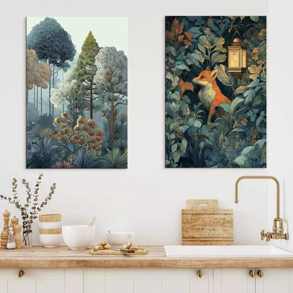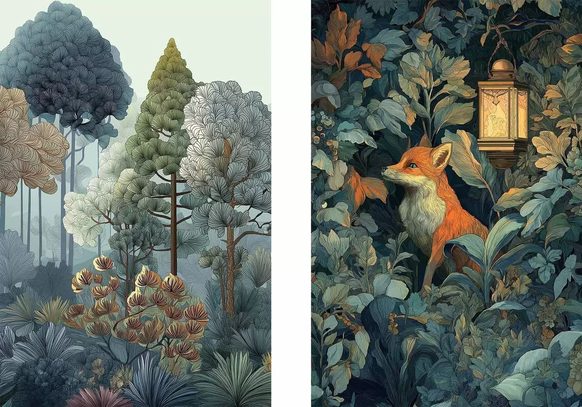 Schilderijen Een schattige vos in een sprookjesbos m01248