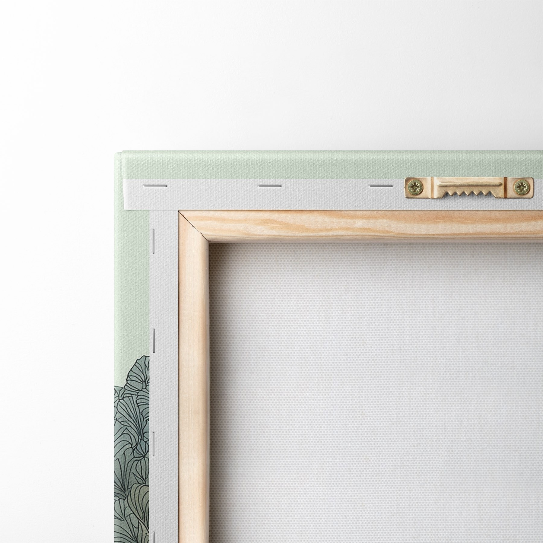 Om het doek op te spannen op spielatten zonder de afbeelding te beschadigen, gebruiken we gespiegeld beeld.