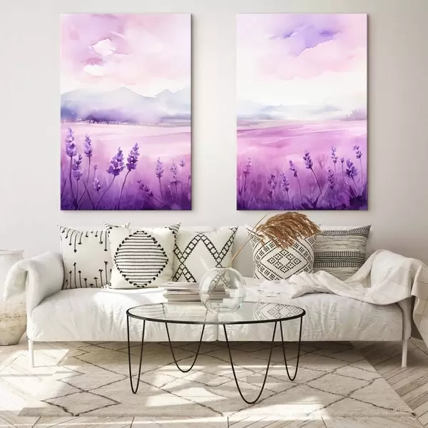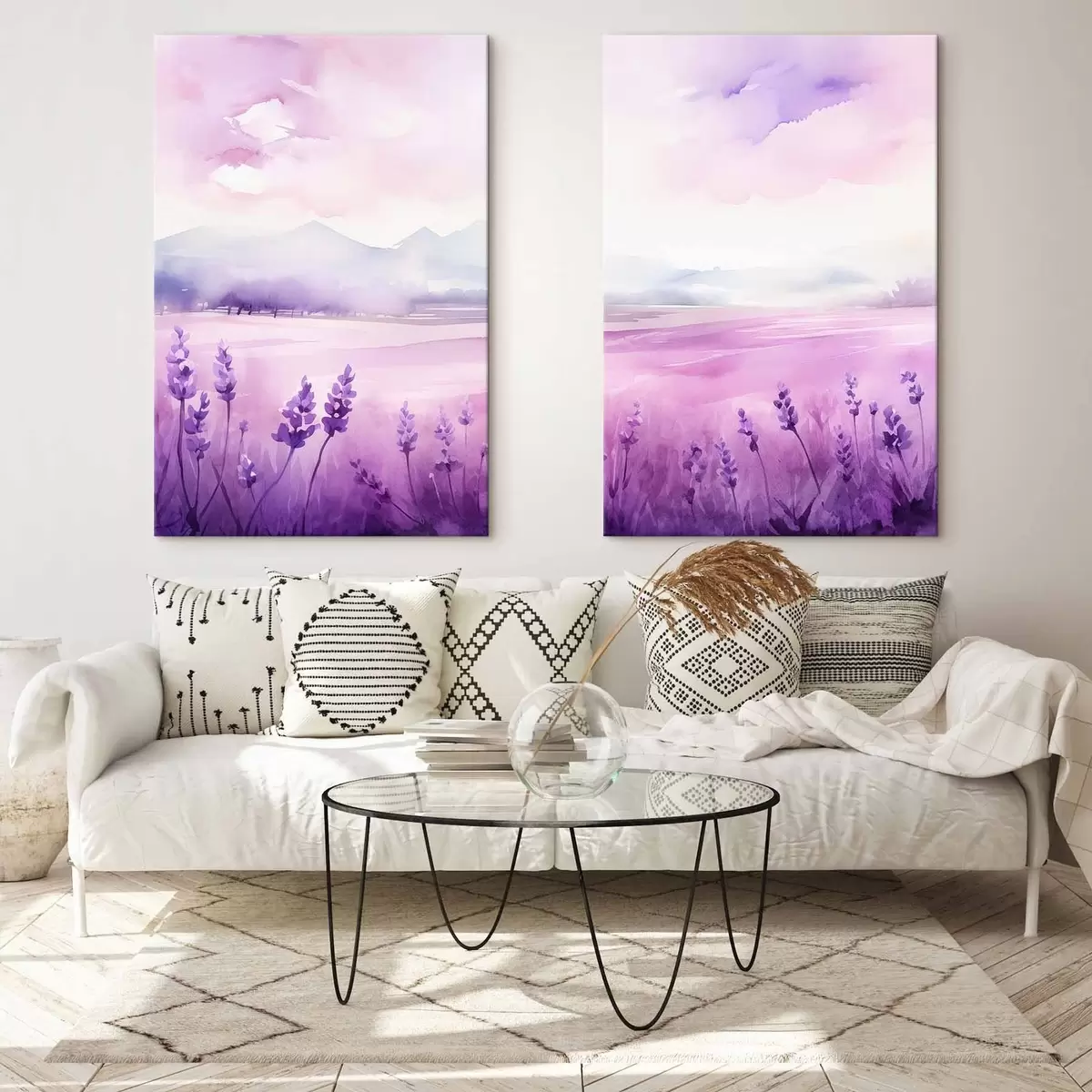 Schilderijen Lavendelveld, imitatie-aquarel m01249