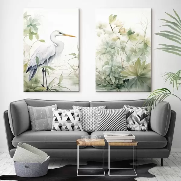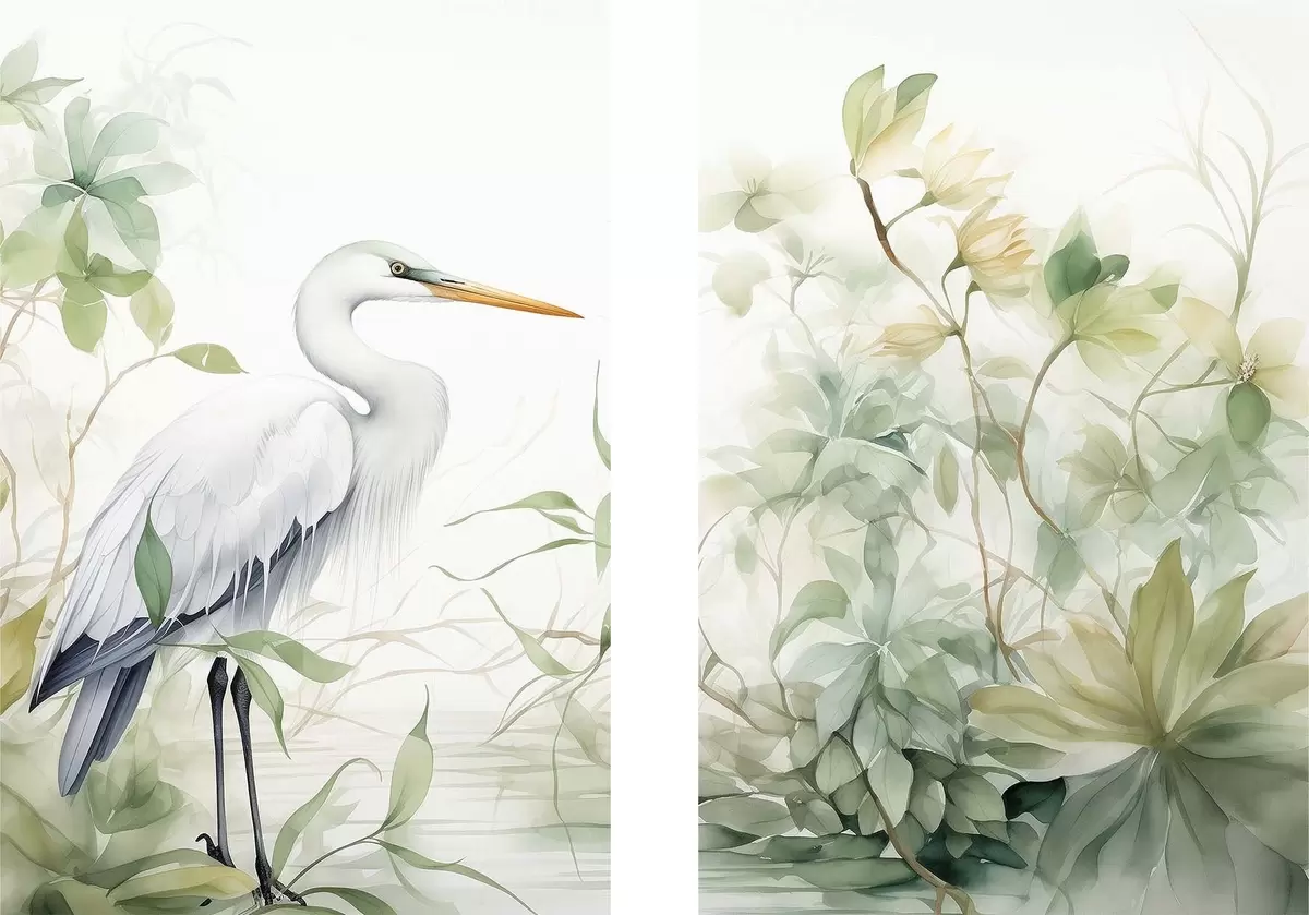 Schilderij Ooievaar tussen planten Art. m01256