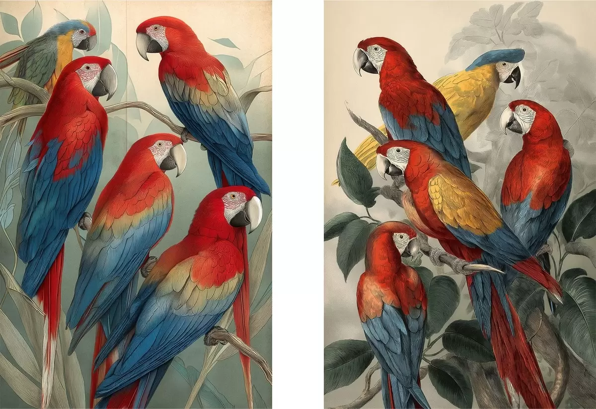 Schilderij Vintage papegaaien Art. m01302