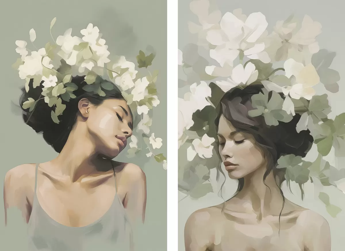 Schilderijen Meisje met een bloemenkrans m30007