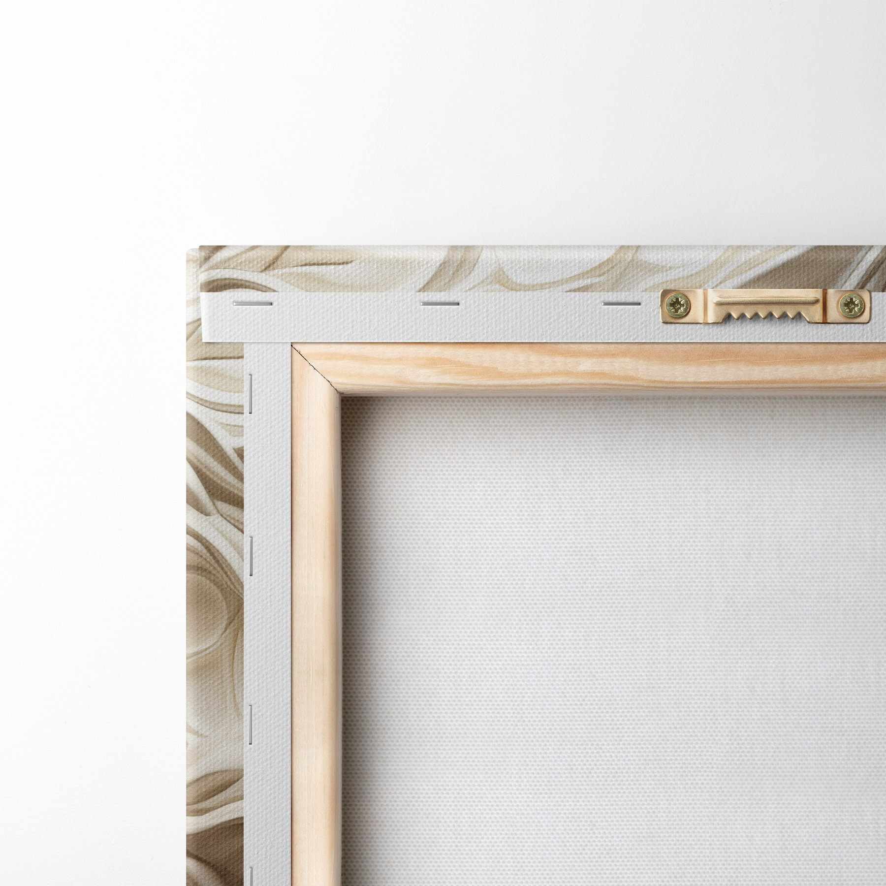 Om het doek op te spannen op spielatten zonder de afbeelding te beschadigen, gebruiken we gespiegeld beeld.