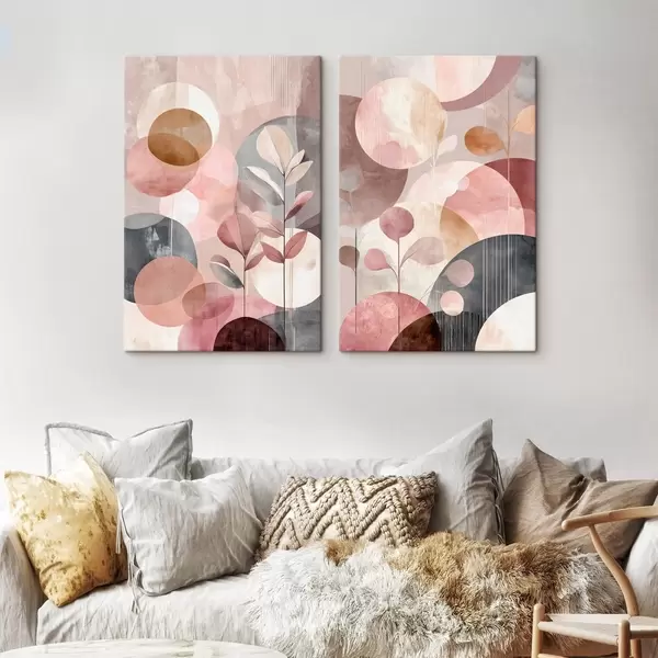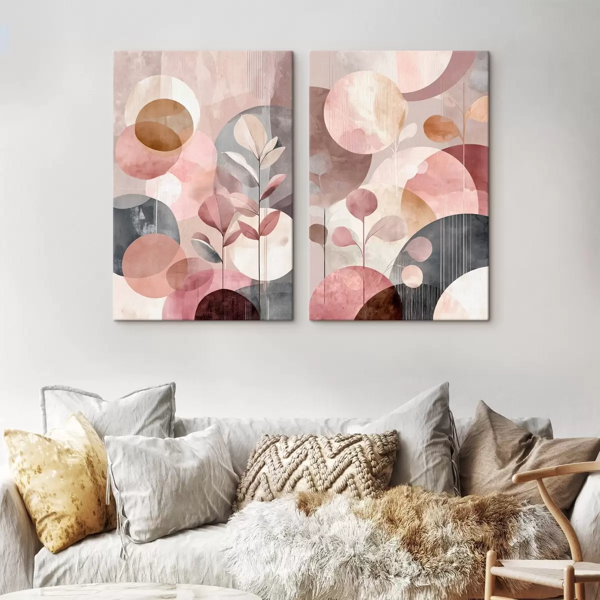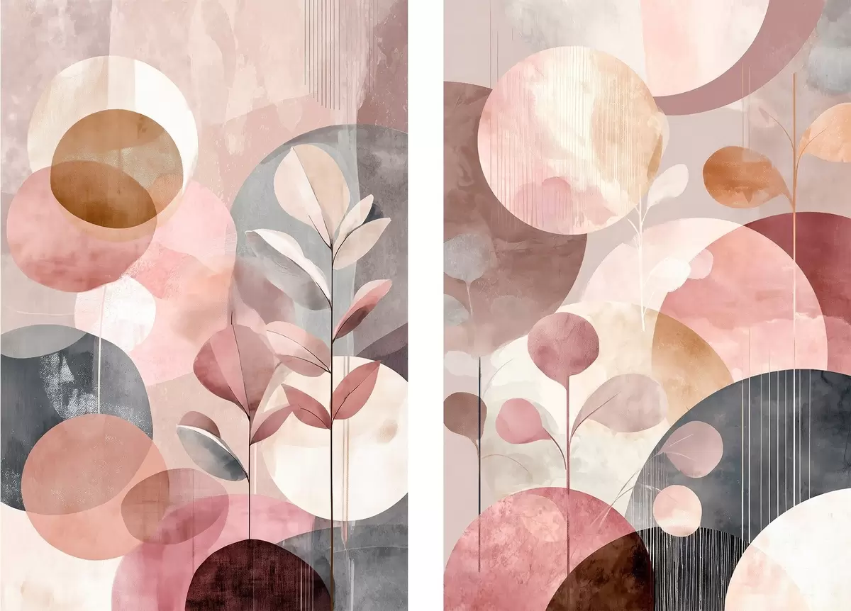 Schilderij Bloemenkunst in pasteltinten met geometrische elementen Art. m30036