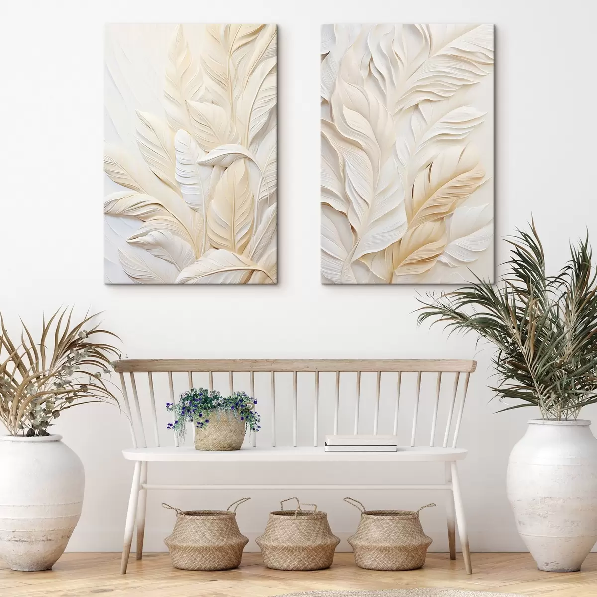 Schilderij Crèmekleurige veren die elkaar overlappen, met een zachte, lichte achtergrond Art. m30062