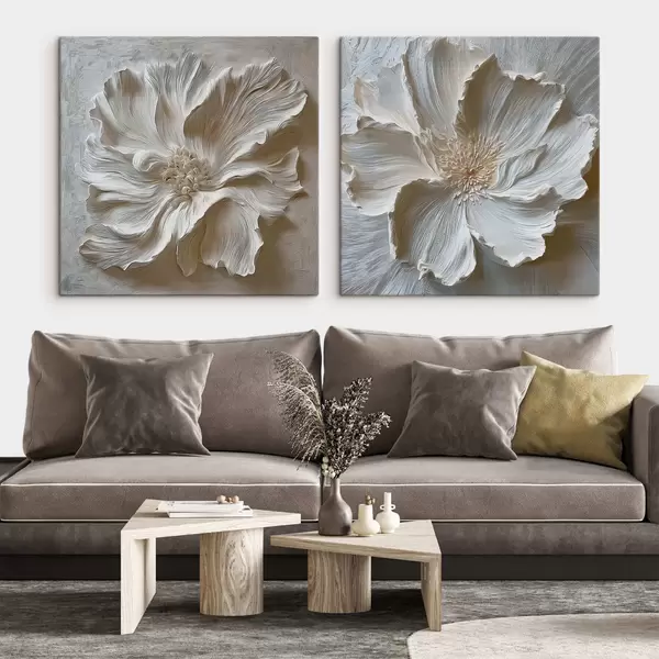 Schilderij Witte reliëfbloem Art. m30081