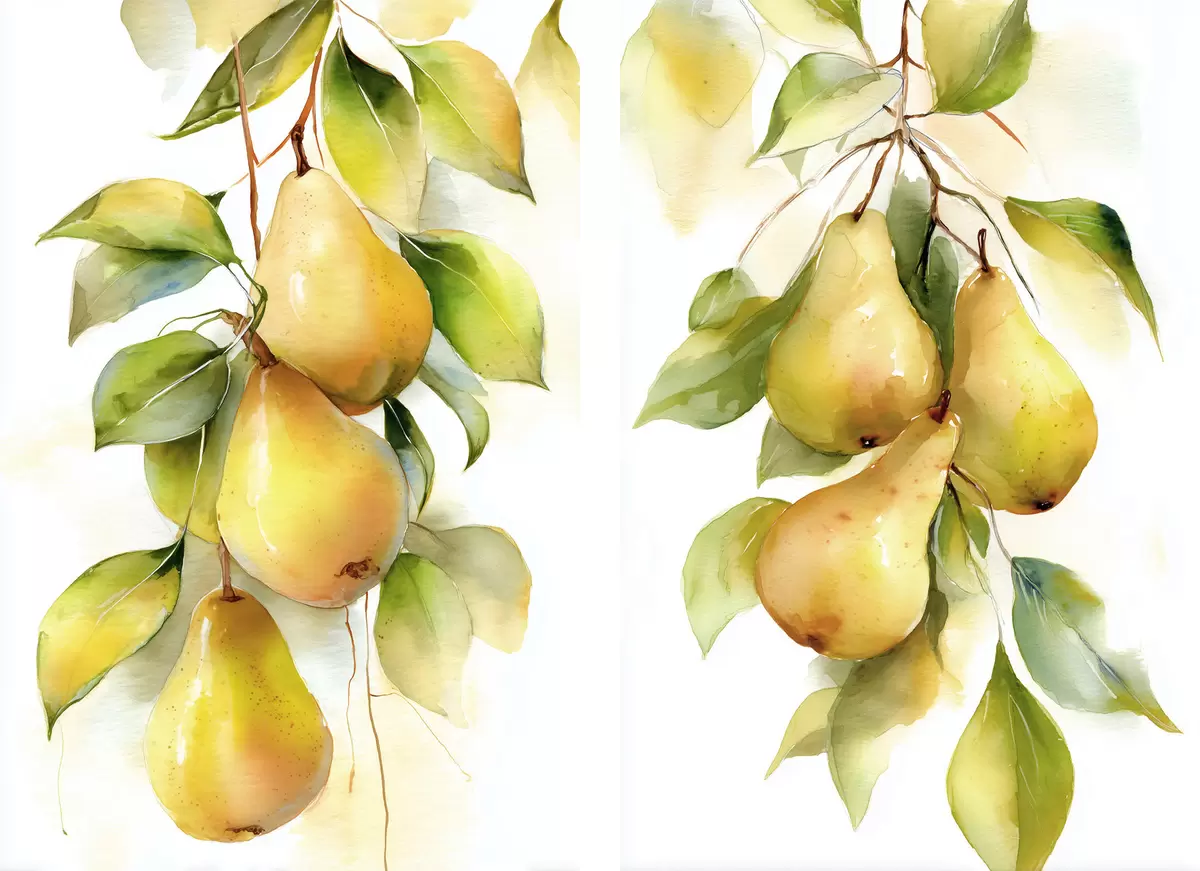 Schilderij sappige gele peren in aquarelstijl Art. m30088