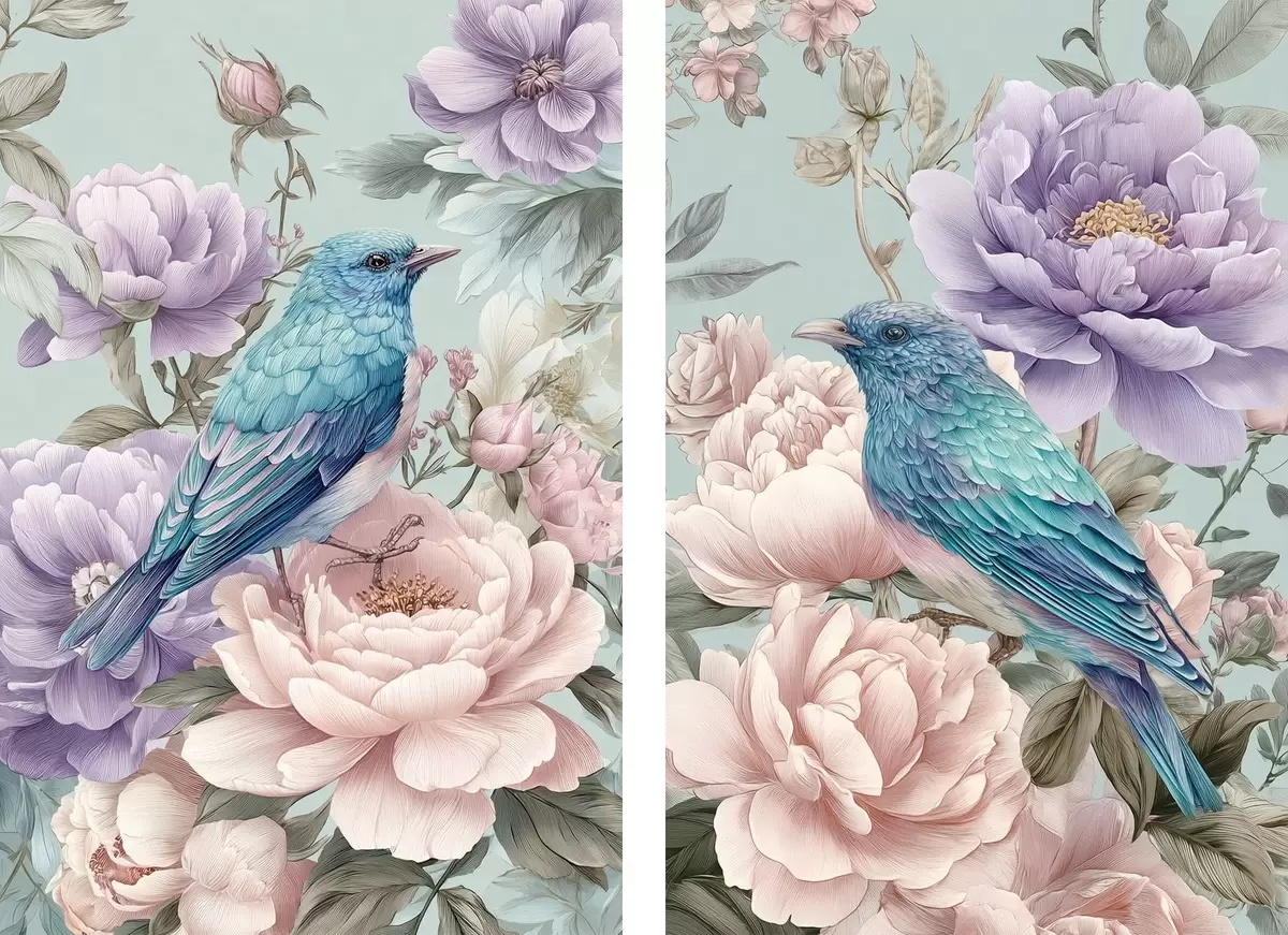 Schilderij zingende vogels in rozen Art. m30094