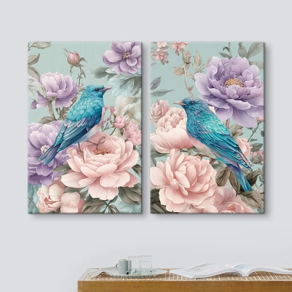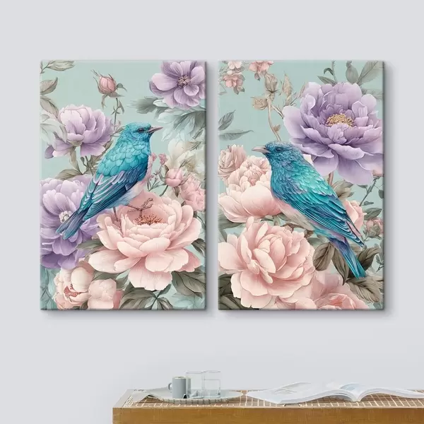 Schilderijen zingende vogels in rozen m30094