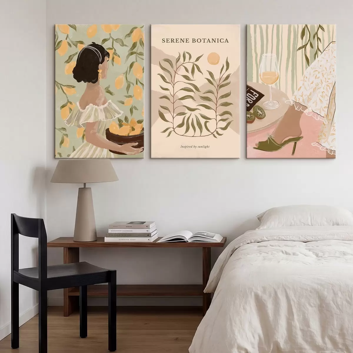 Er zijn drie soorten materiaal te bestellen: Economic Canvas - een dicht en duurzaam materiaal voor digitaal printen, identiek aan schildersdoek, waterdicht oppervlak, realistische weergave van details, materiaal met gemiddelde korrel. Premium Canvas - de textuur lijkt op die van schildersdoek (verweven kleine draden). Zachte, gedetailleerde reproductie van de afbeelding op een mat oppervlak. Eco-Premium - hoogwaardige 100% katoenen stof. Dankzij de natuurlijke katoenvezels is het materiaal duurzaam en slijtvast. Uitstekende kleurweergave en detail.