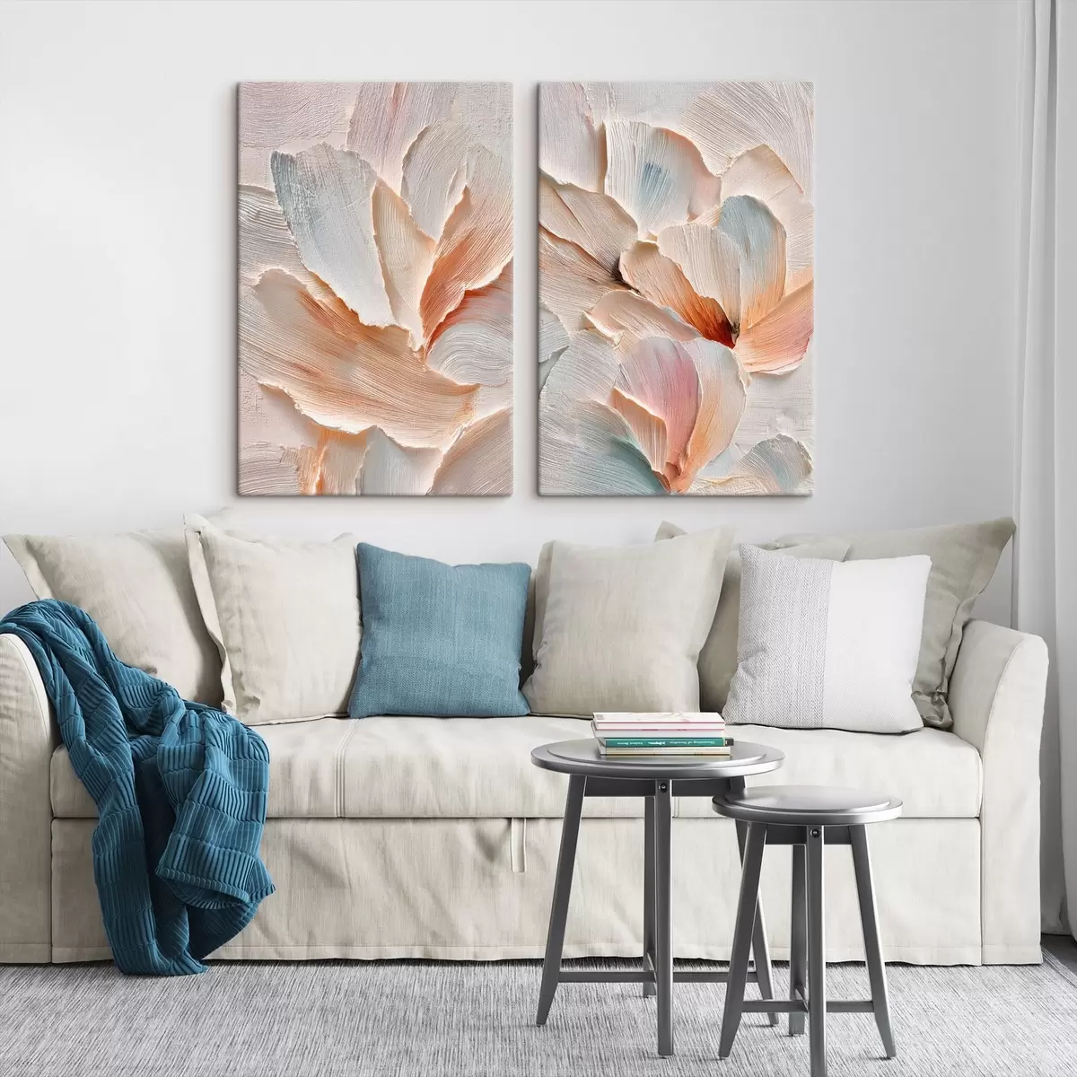 Schilderijen Abstracte bloemcompositie in pasteltinten in de stijl van een olieverfschilderij m30145