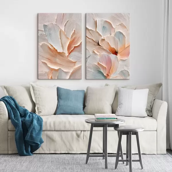 Schilderij Abstracte bloemcompositie in pasteltinten in de stijl van een olieverfschilderij Art. m30145