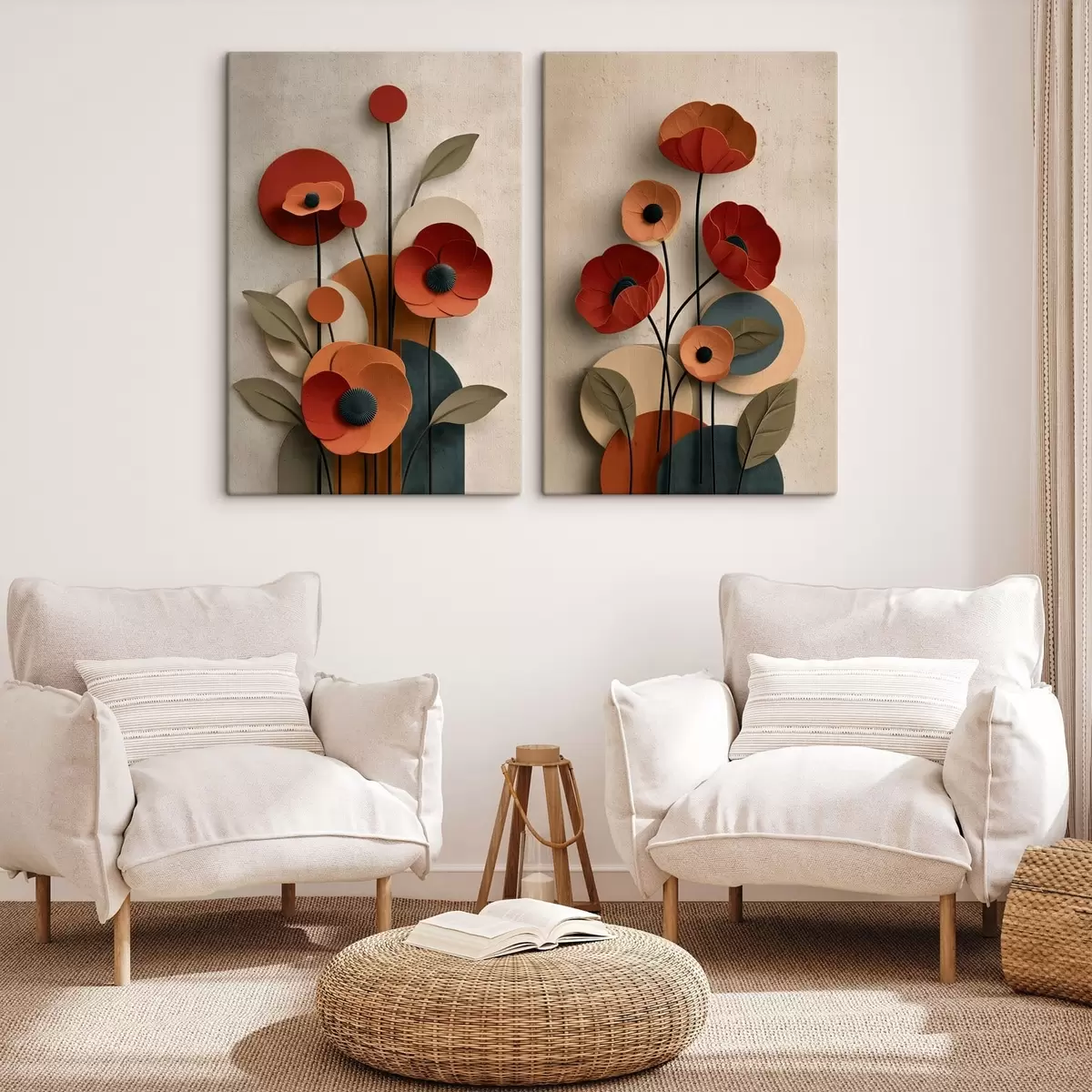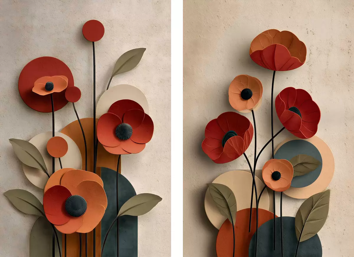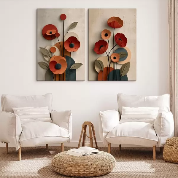 Schilderij bloemen in een vereenvoudigde stijl met een volume-effect Art. m30178