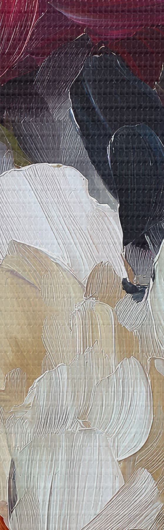 Het schilderij kan direct na ontvangst worden opgehangen. Het schilderij wordt opgespannen op een 2 cm breed houten spieraam.