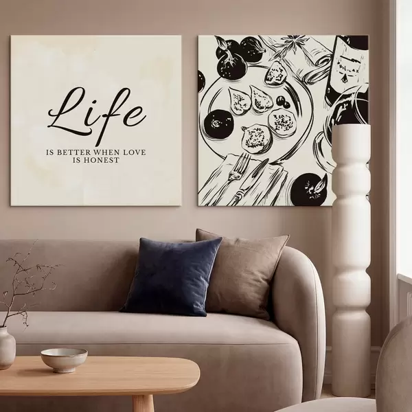 Schilderij Tekst 'Life' en close-up van een witte bloem Art. m30238