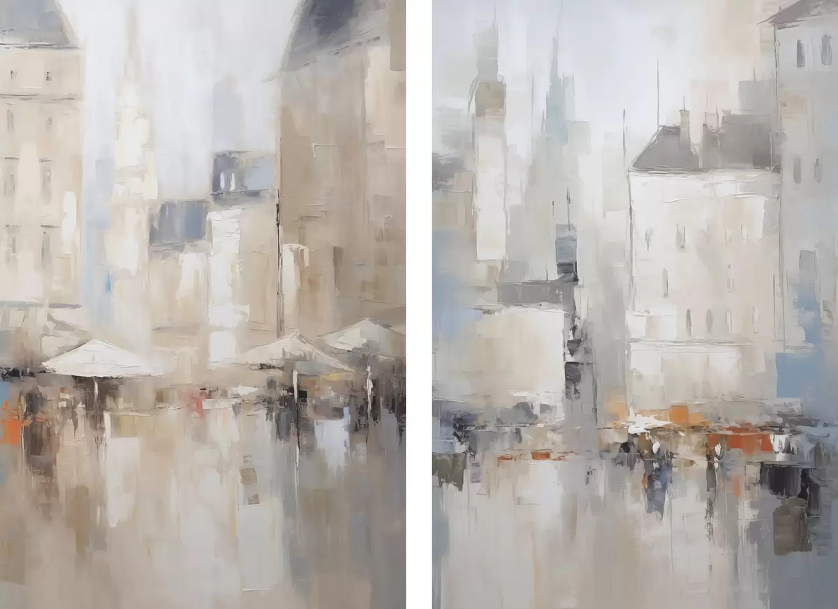 Schilderijen Abstracte imitatie van een stadsgezicht uit de schilderkunst m30247