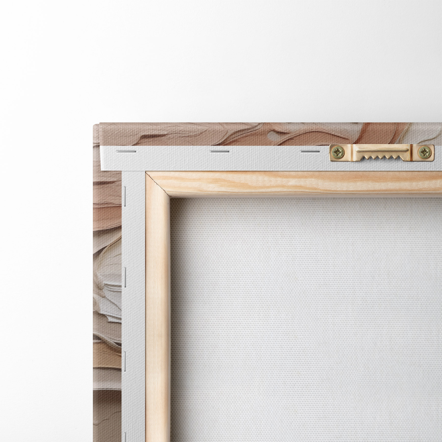 Om het doek op te spannen op spielatten zonder de afbeelding te beschadigen, gebruiken we gespiegeld beeld.
