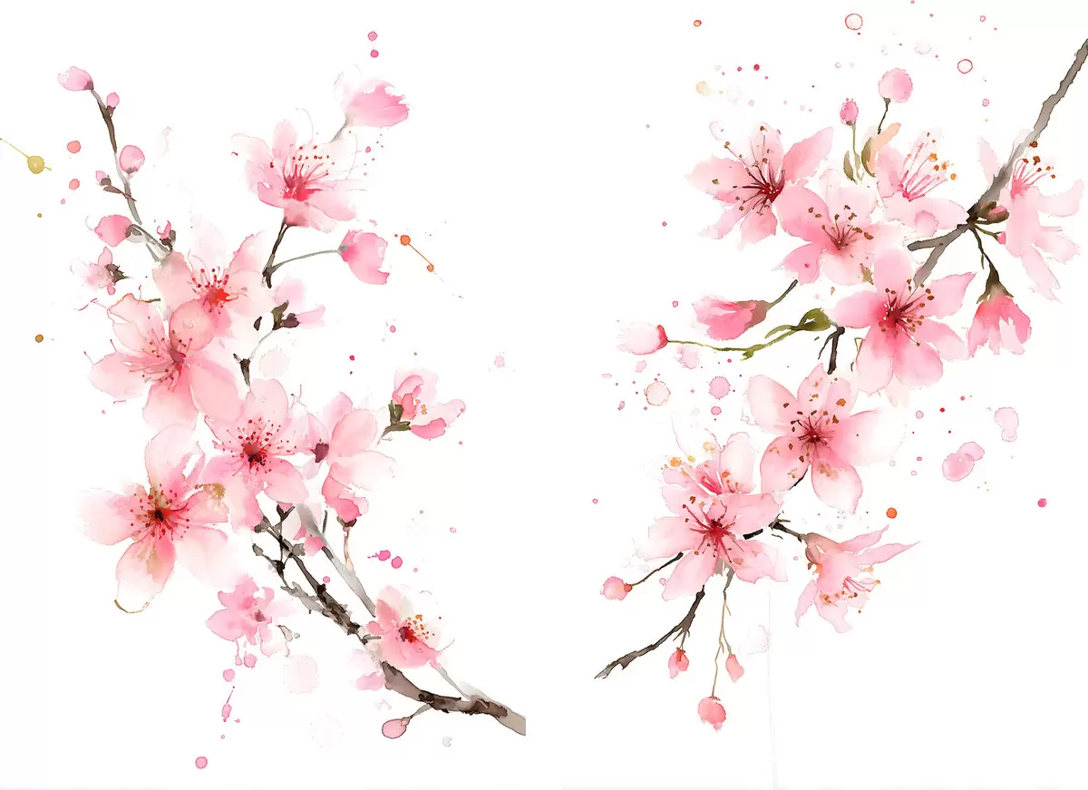 Schilderijen bloeiende abrikozen takken in aquarelstijl m30257
