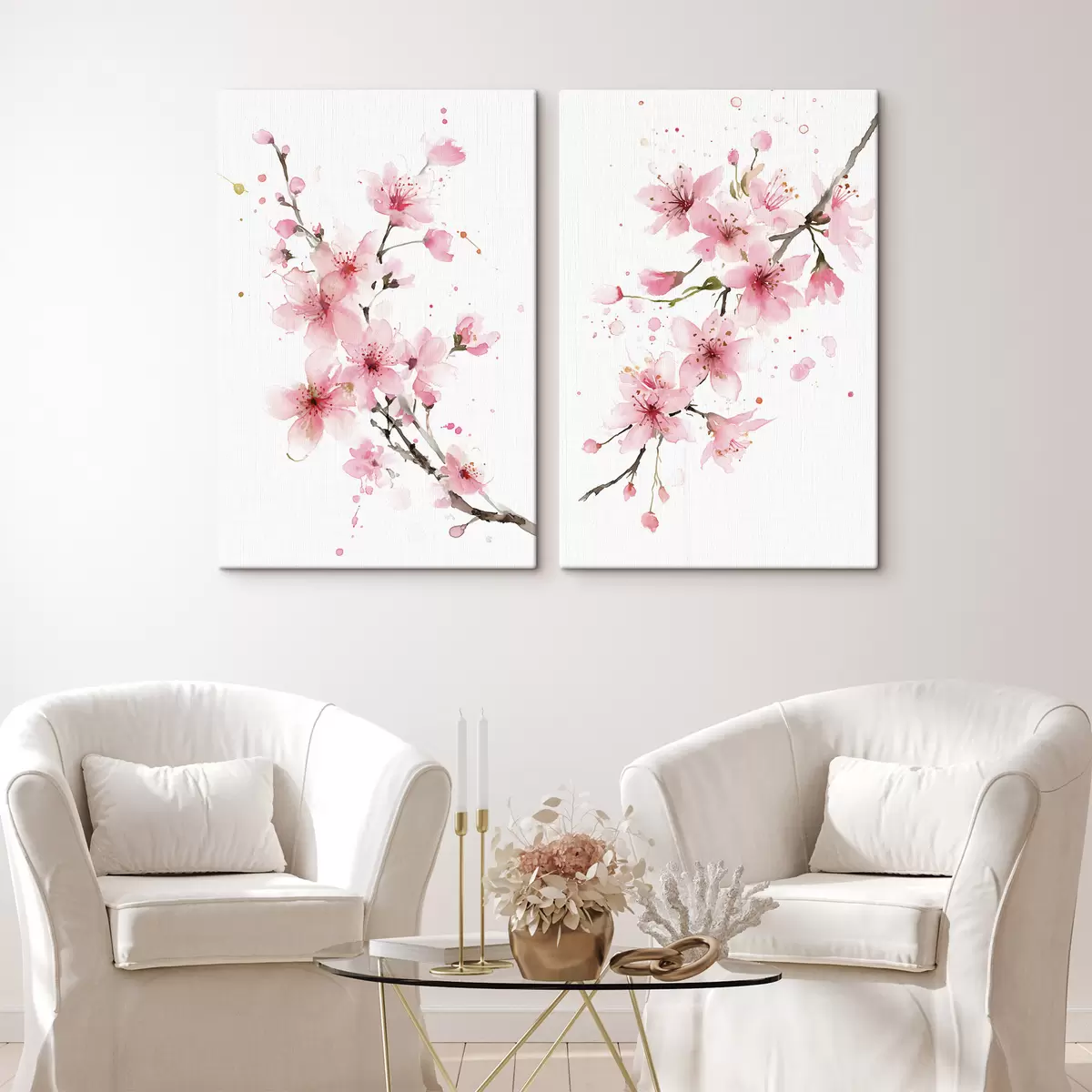 Schilderij bloeiende abrikozen takken in aquarelstijl Art. m30257