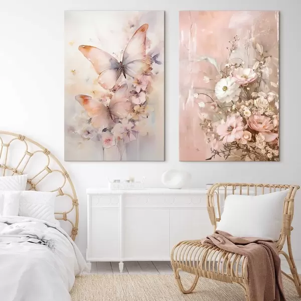 Schilderij Bloemen met vlinders, een verfijnd interieur Art. m30267