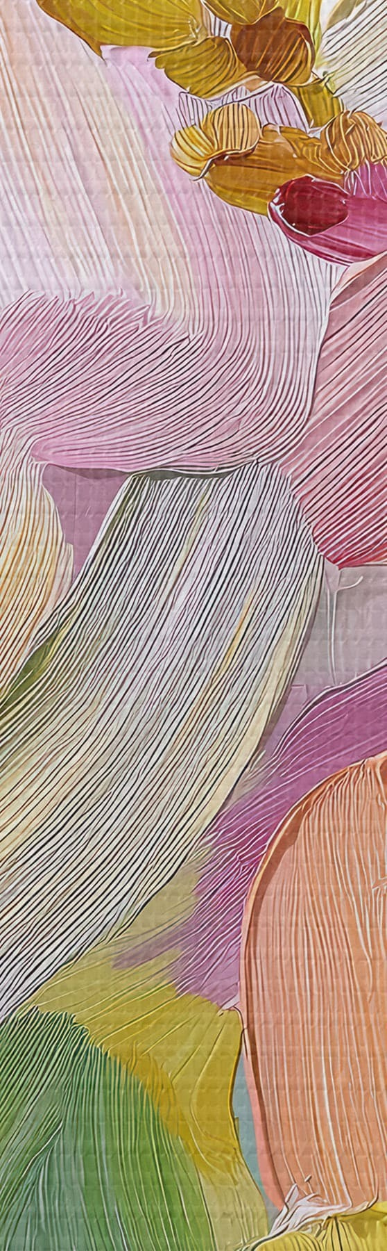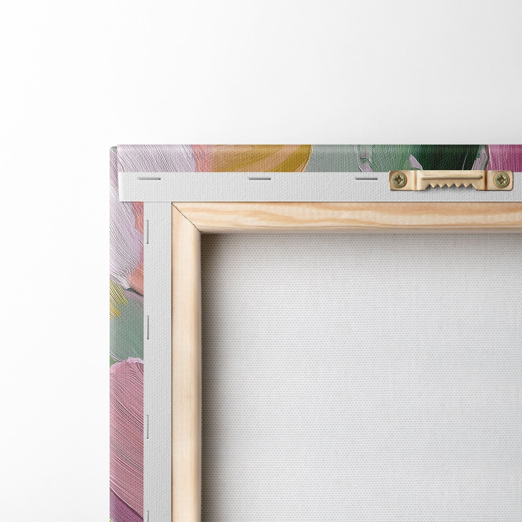 Het schilderij kan direct na ontvangst worden opgehangen. Het schilderij wordt opgespannen op een 2 cm breed houten spieraam.