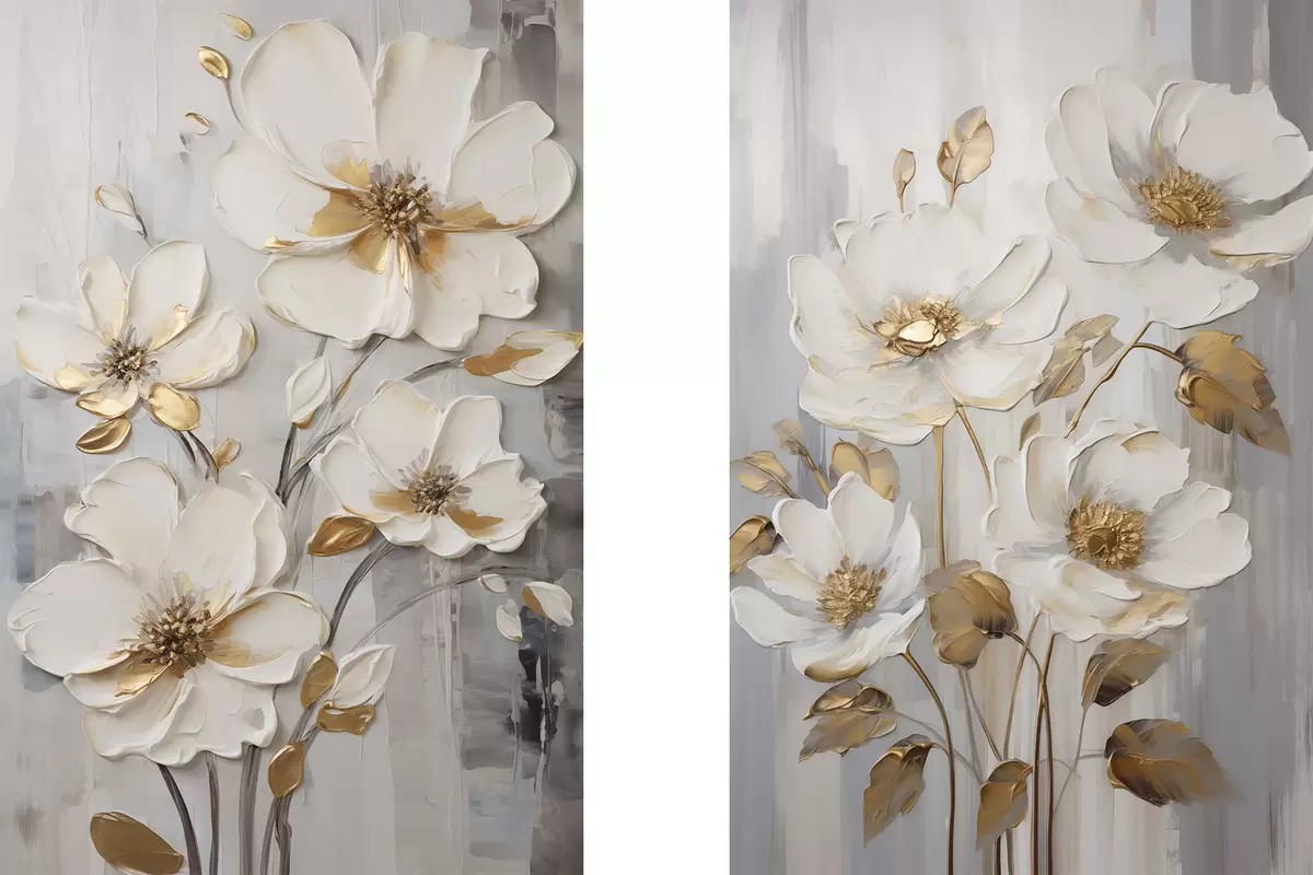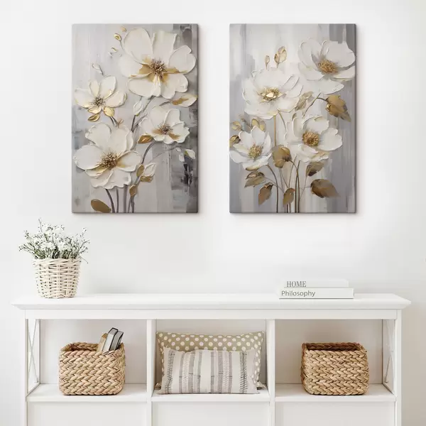 Schilderij Witte bloemen met gele accenten op een structuurrijke achtergrond Art. m30311