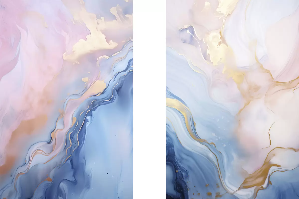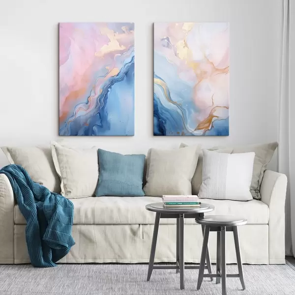 Schilderij Abstracte, gestructureerde vloeiende kunst met wervelende patronen in roze en blauwe tinten Art. m30315