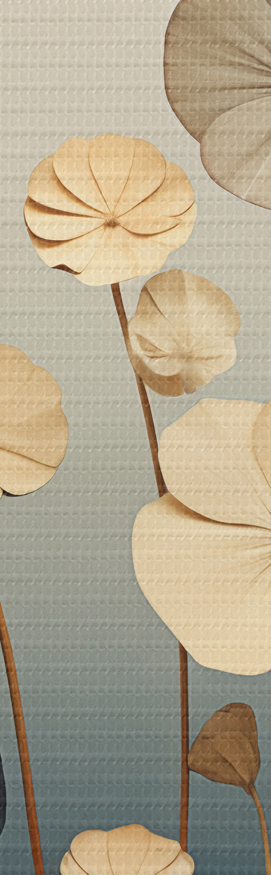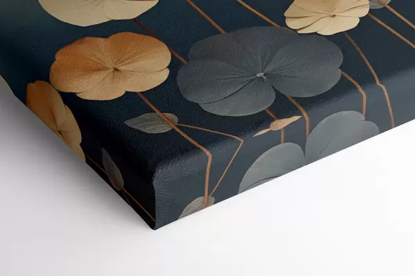 Schilderij Waterlelieblaadjes tegen een ingetogen achtergrond van beige en donkerblauw Art. m30317