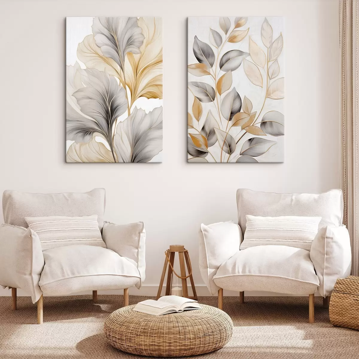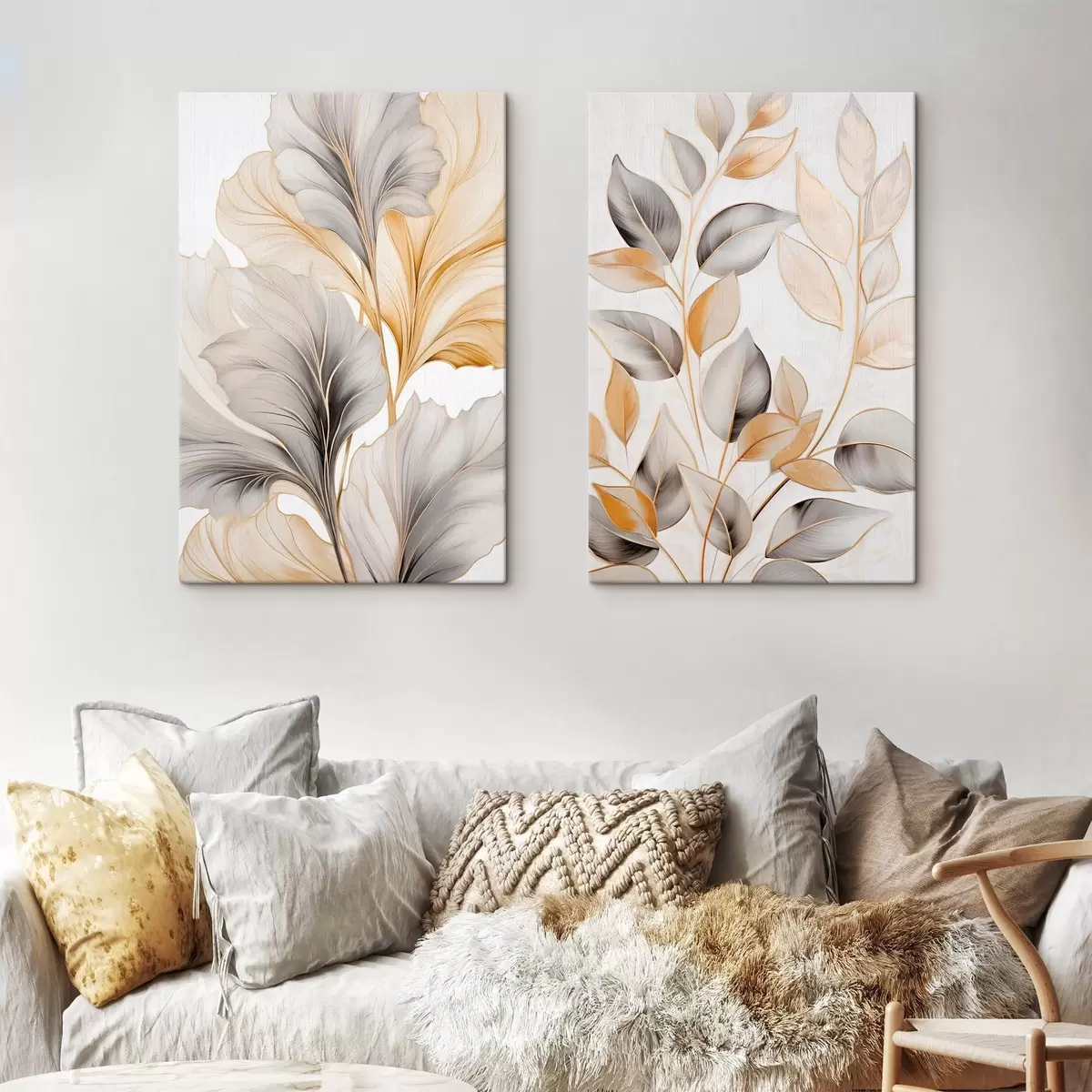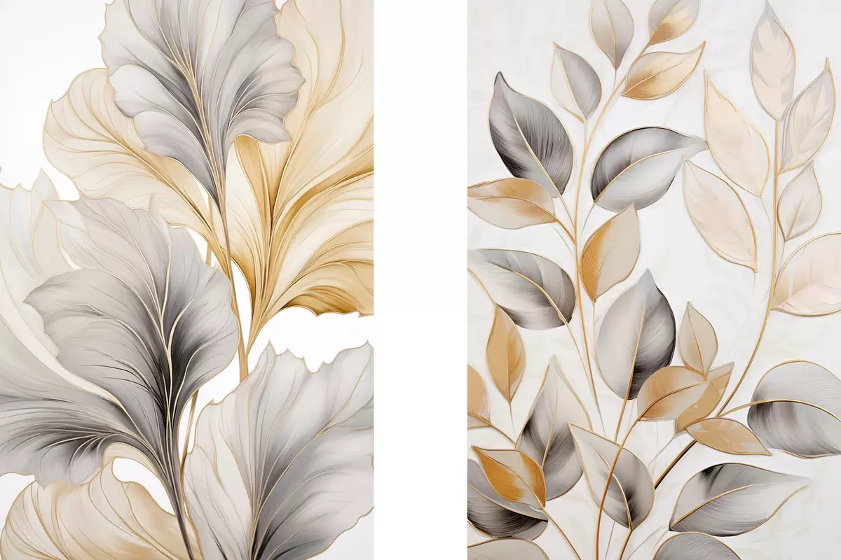 Schilderijen Grote, doorschijnende bladeren in grijze en gele tinten m30323
