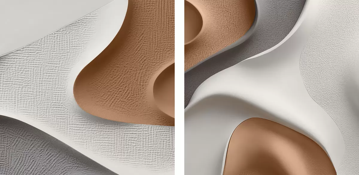 Standaard - glad, korrelig synthetisch materiaal met een glanzend oppervlak.