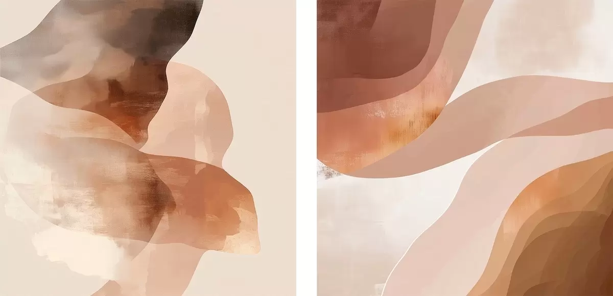 Schilderijen Samenstelling van halfdoorzichtige lagen in bruine zandtinten m30345