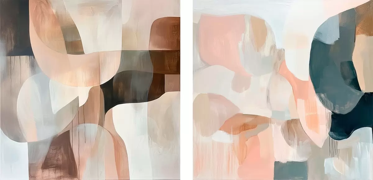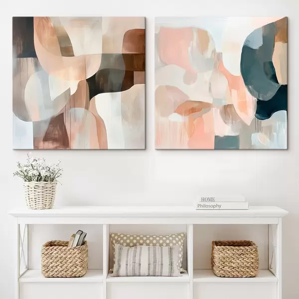 Schilderij Minimalistische compositie in beige-roze en grijstinten in een artistieke stijl Art. m30356
