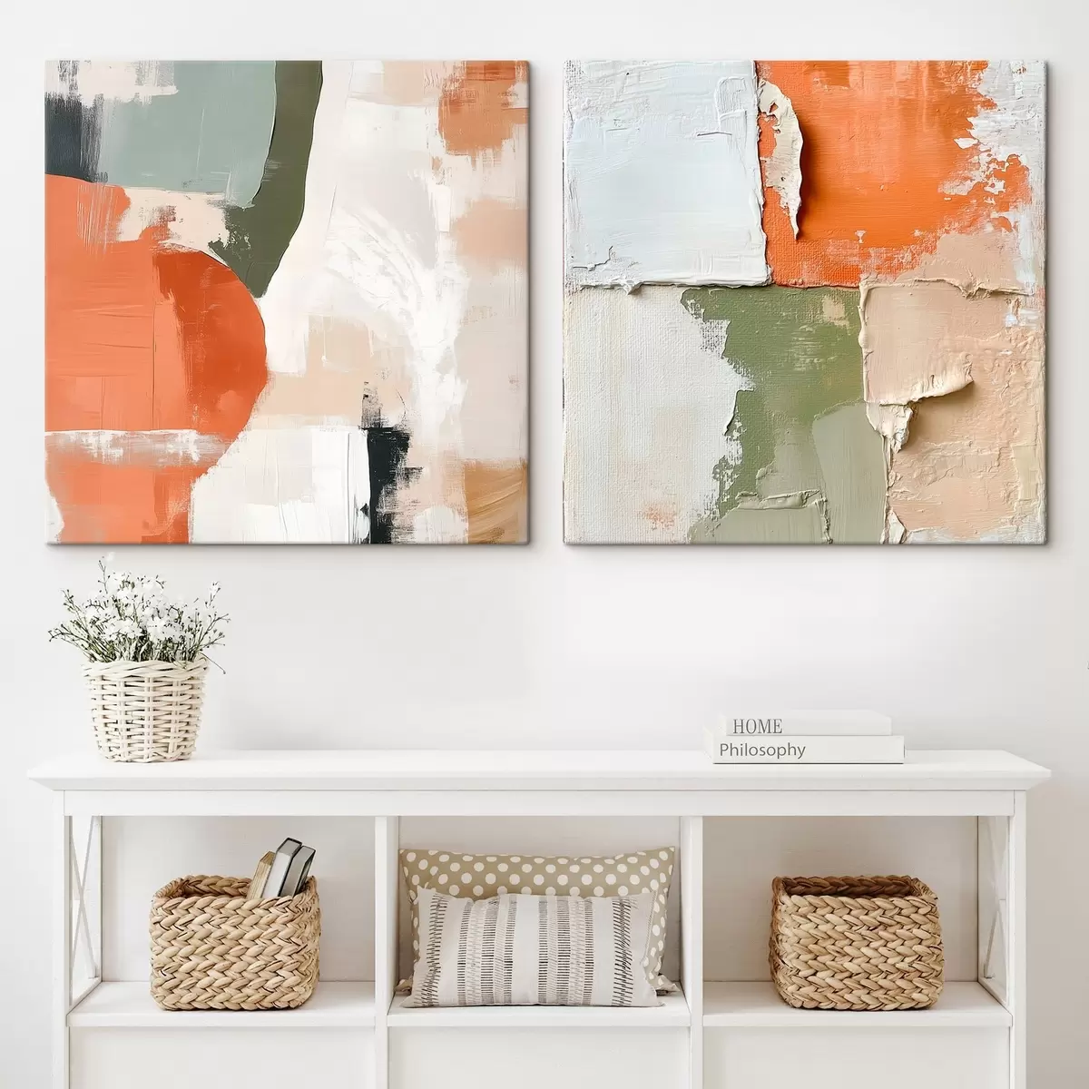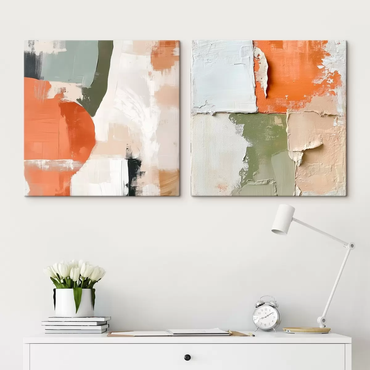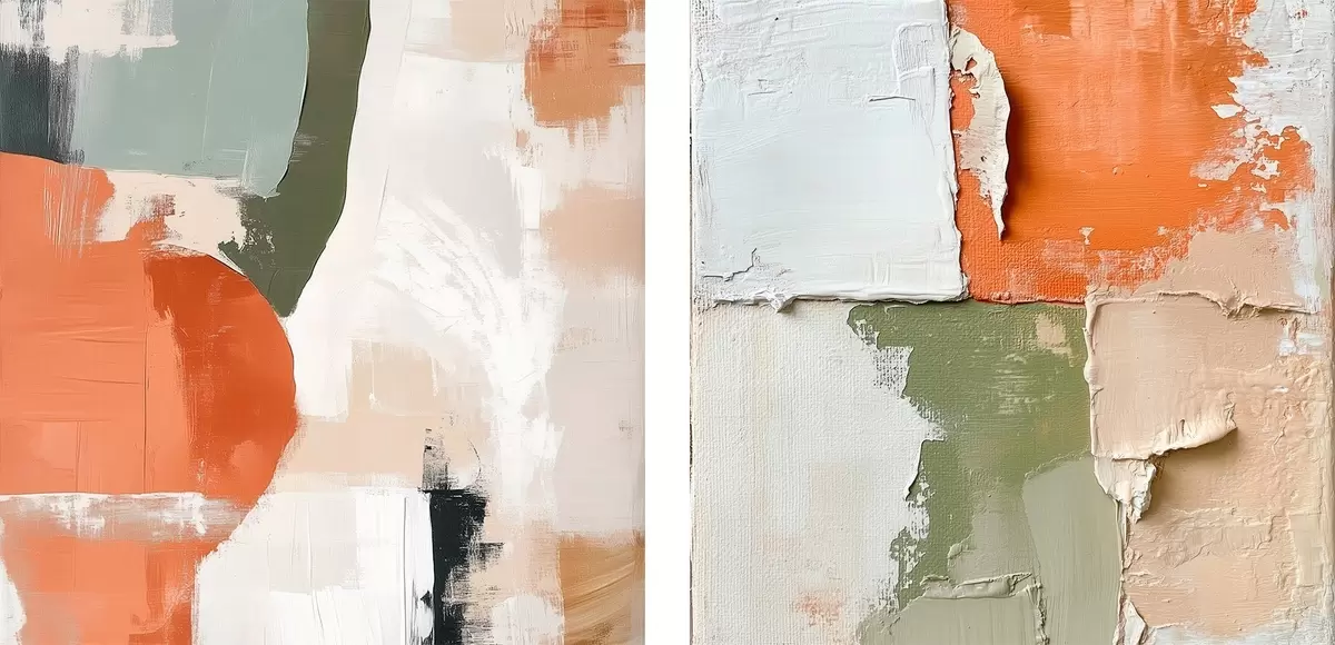 Schilderijen Abstracte kunst met gelaagde verf en contrasterende kleurvlakken m30360