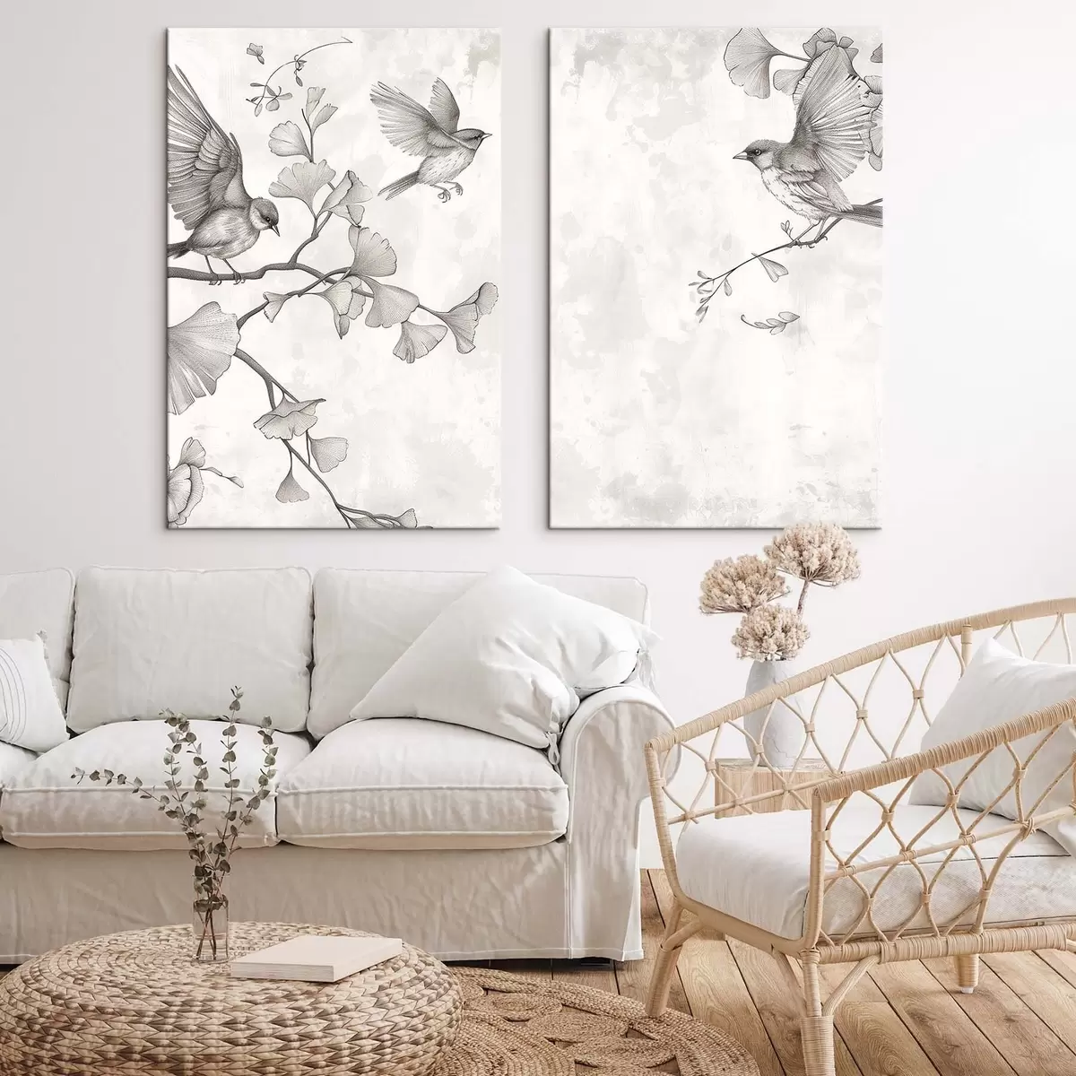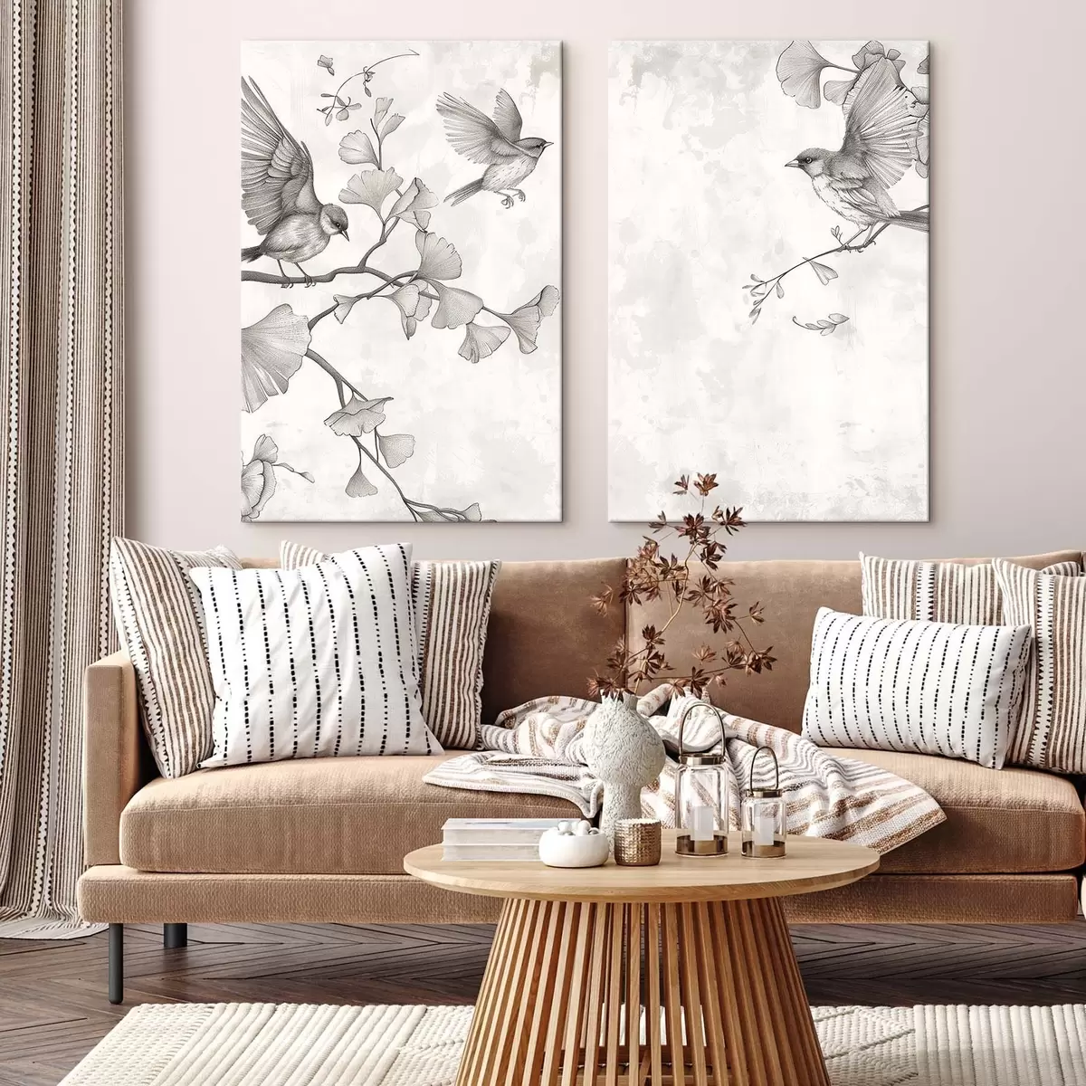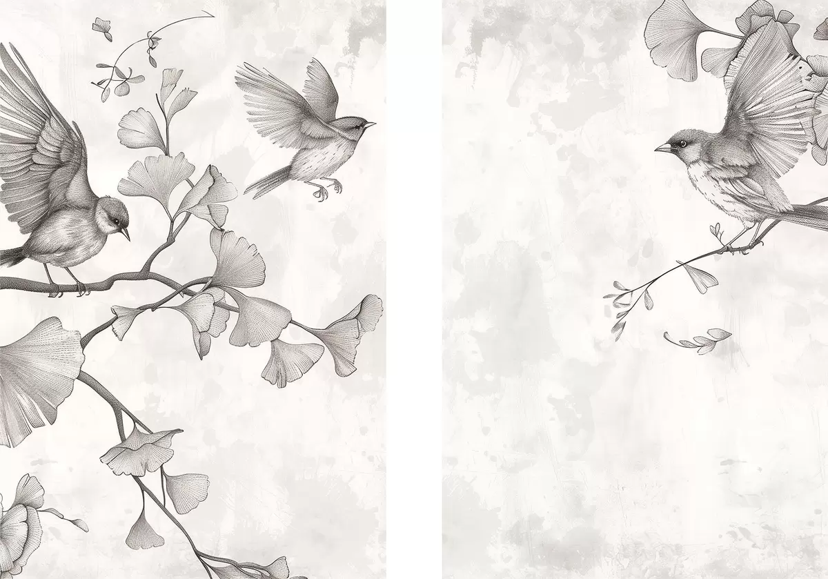 Schilderij Vogels op ginkgotakken Art. m30380