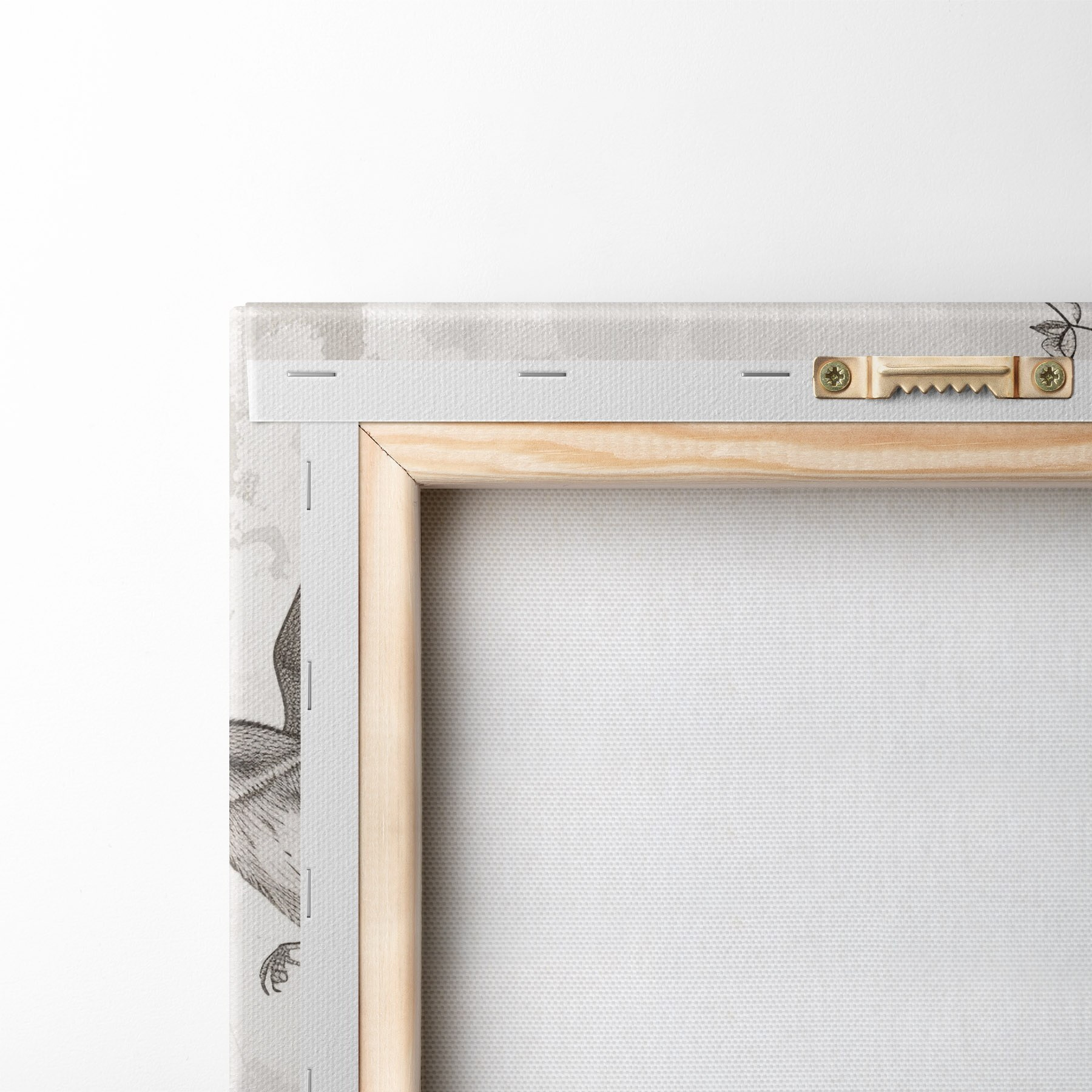 Om het doek op te spannen op spielatten zonder de afbeelding te beschadigen, gebruiken we gespiegeld beeld.