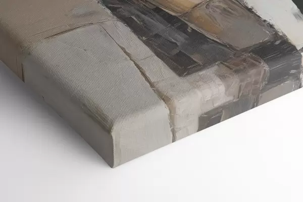 Het schilderij kan direct na ontvangst worden opgehangen. Het schilderij wordt opgespannen op een 2 cm breed houten spieraam.