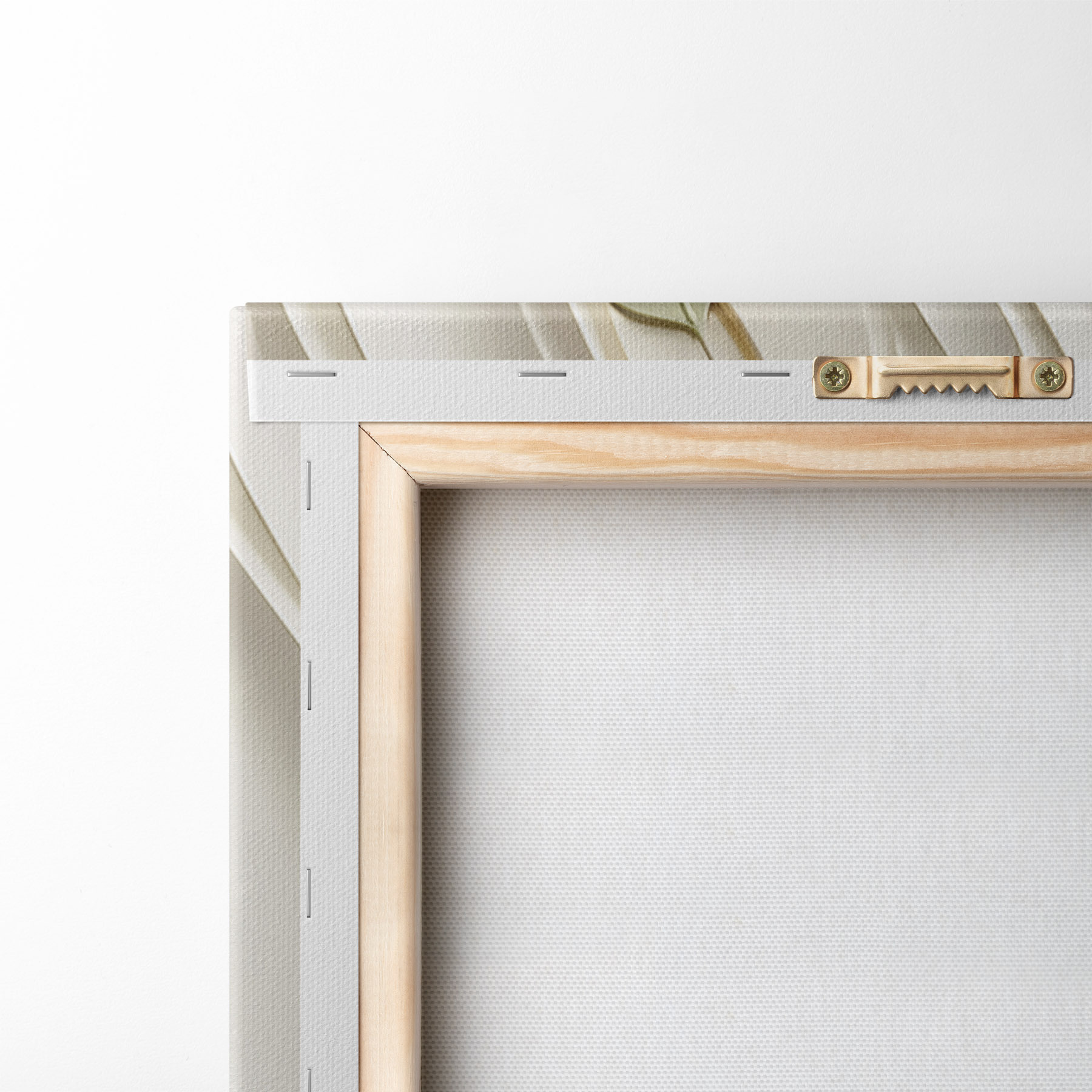 Om het doek op te spannen op spielatten zonder de afbeelding te beschadigen, gebruiken we gespiegeld beeld.