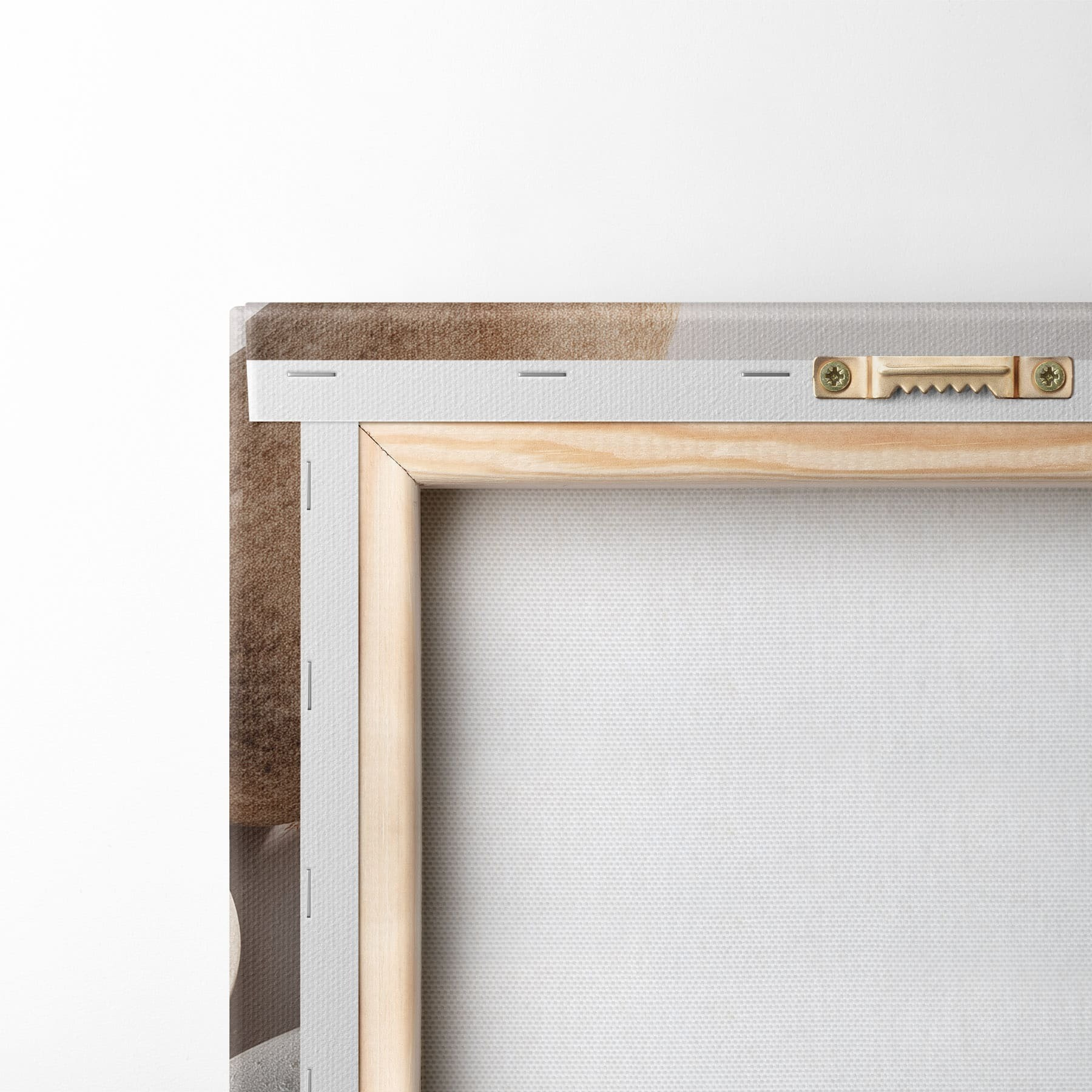 Je kunt het schilderij ophangen aan schroeven. Hiervoor leveren we bevestigingen bij onze foto's, zodat je de foto gemakkelijk kunt ophangen.