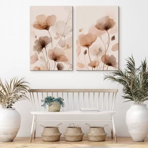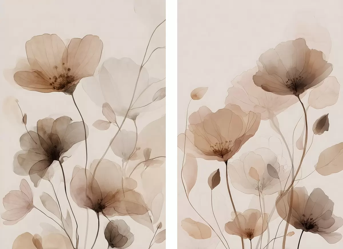 Schilderij aquarelbloemen in bruintinten Art. m30435