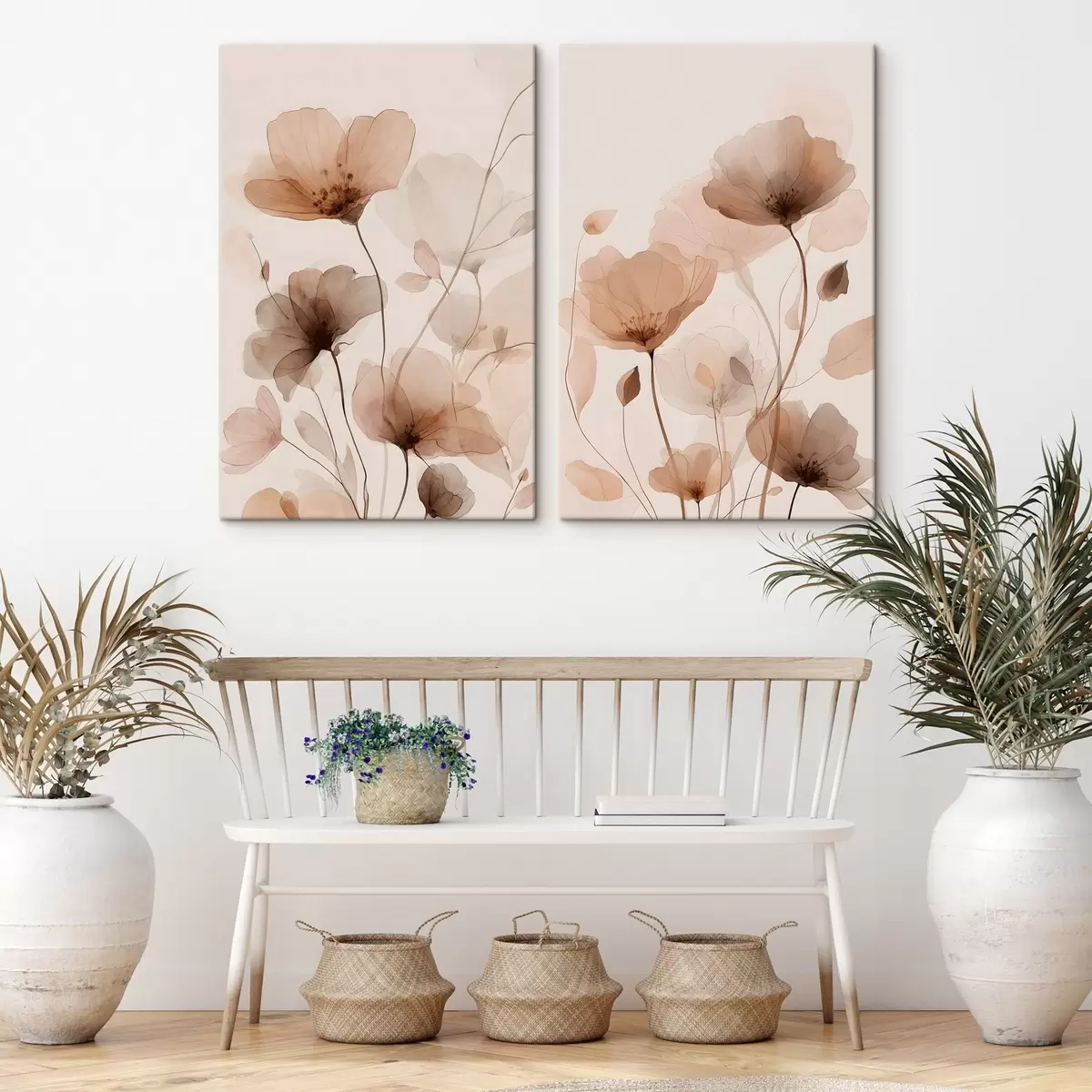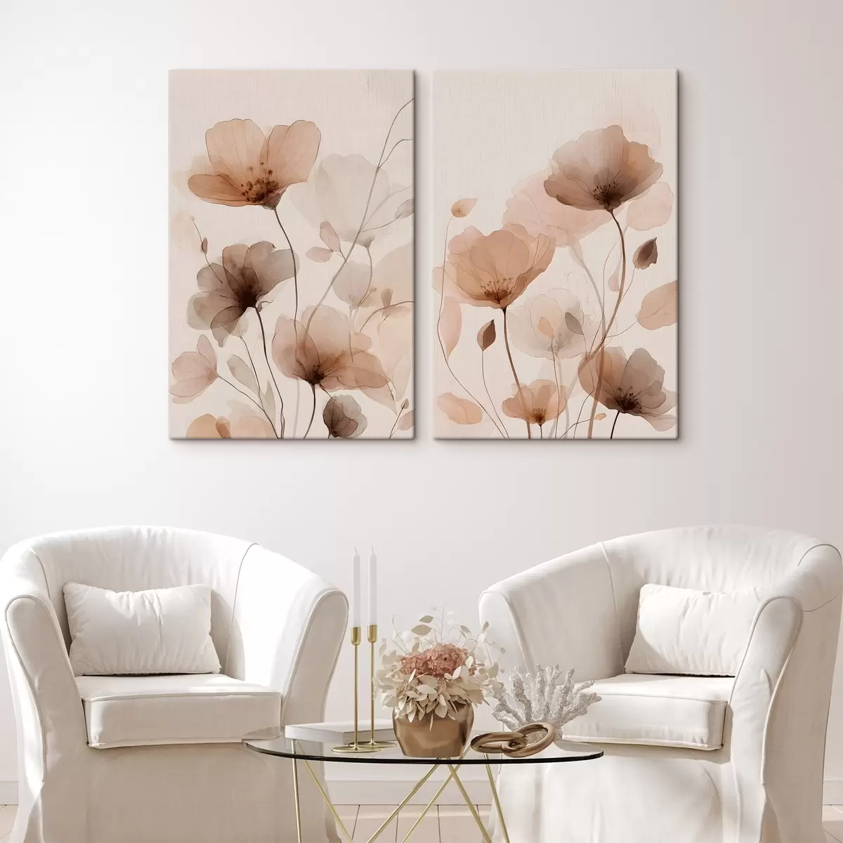 Schilderijen aquarelbloemen in bruintinten m30435