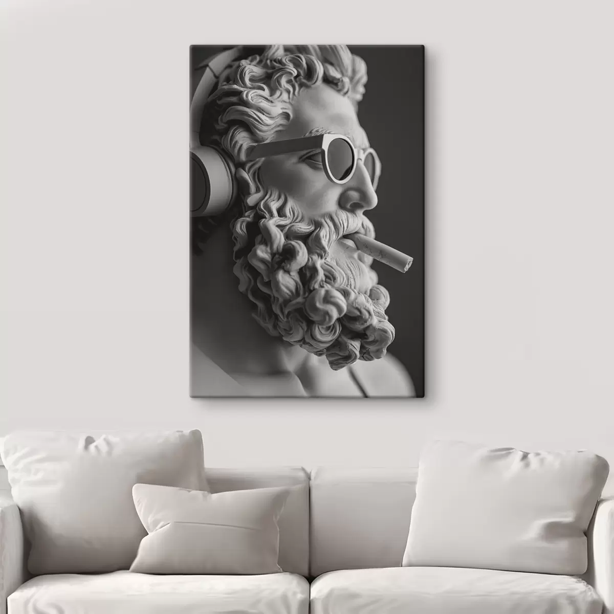 Schilderij zwart-wit oude Griekse sculptuur van zeus in moderne stijl Art. s26122