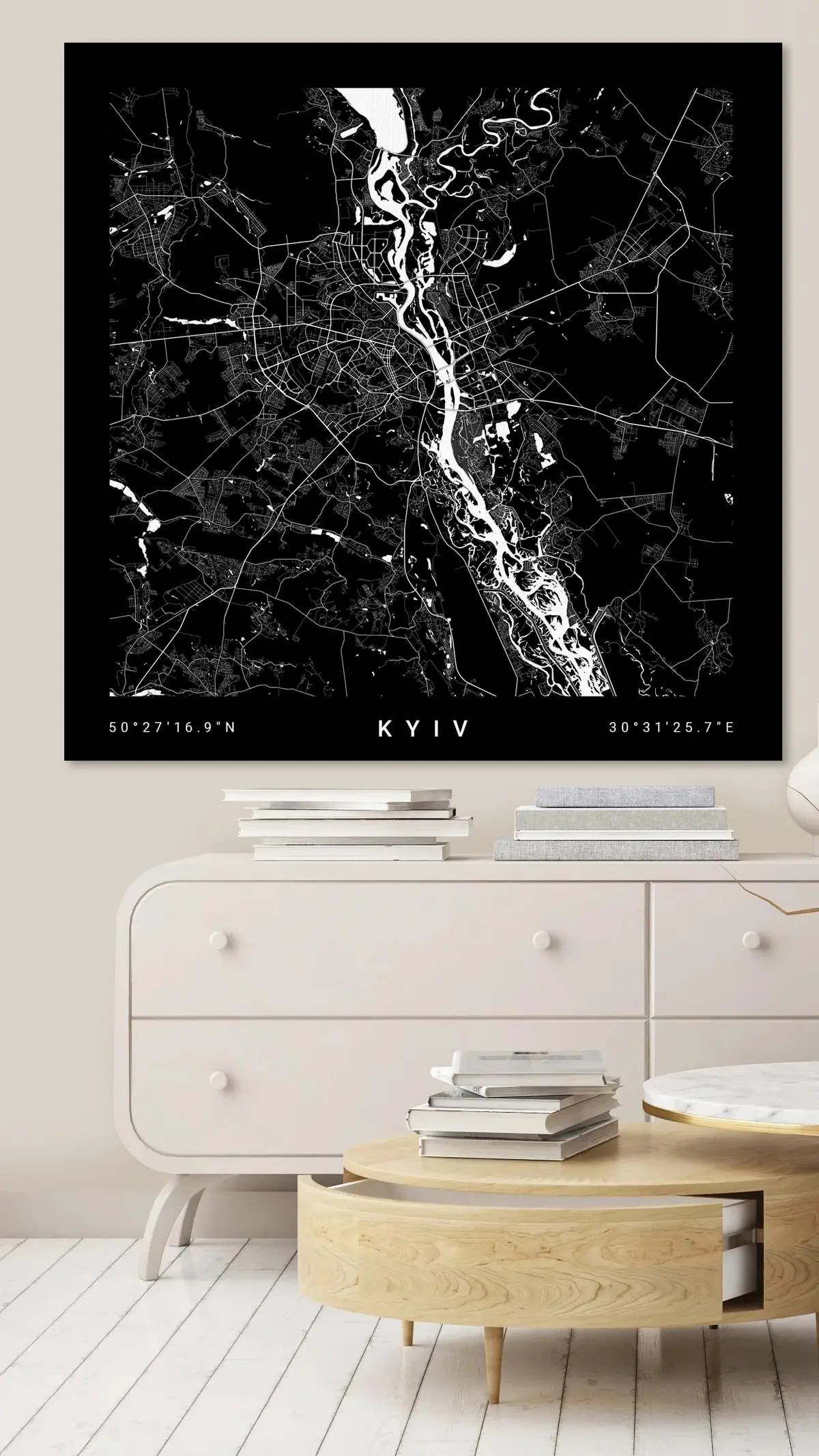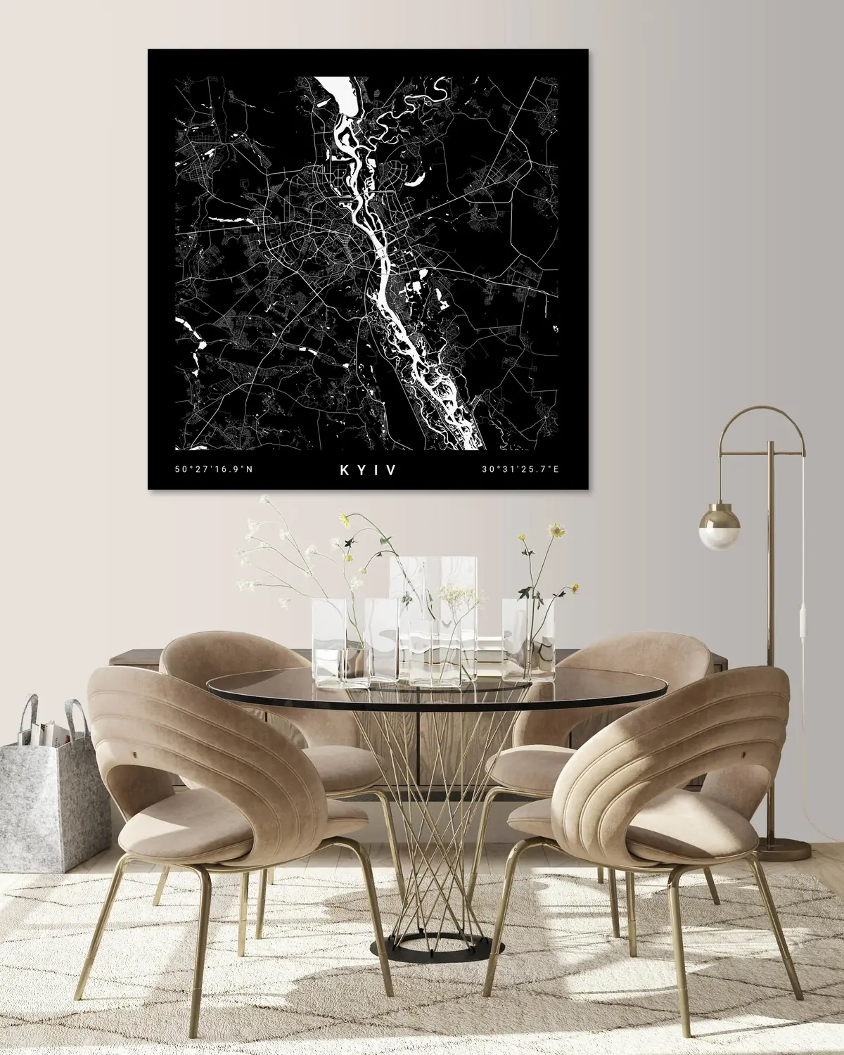 Schilderij Minimalistische kaart van de stad Kyiv, Oekraïne Art. s31428