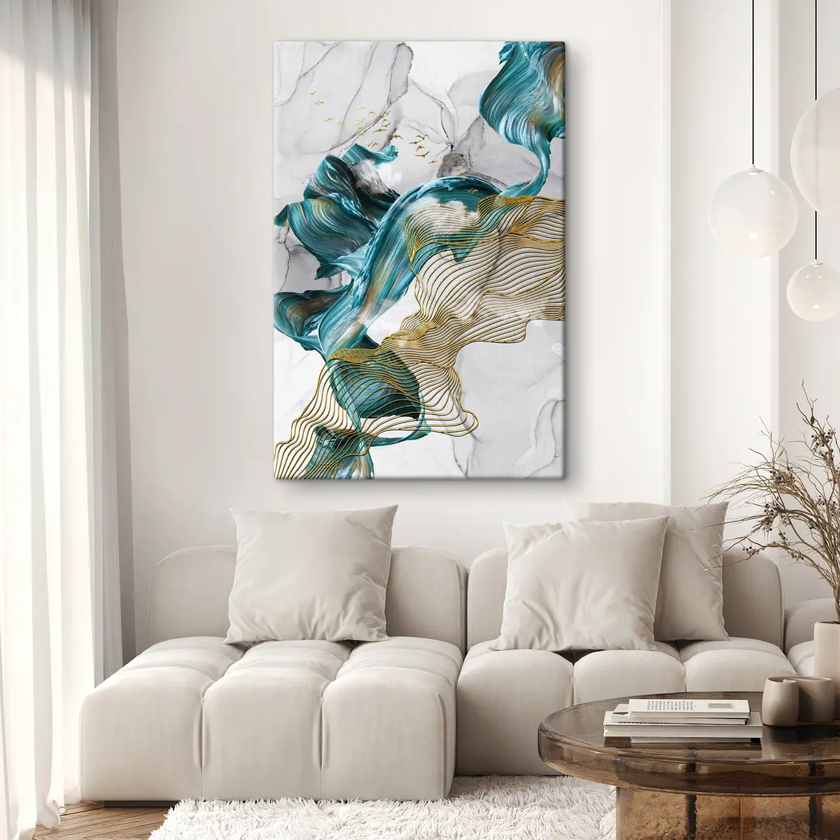 Je kunt het schilderij ophangen aan schroeven. Hiervoor leveren we bevestigingen bij onze foto's, zodat je de foto gemakkelijk kunt ophangen.