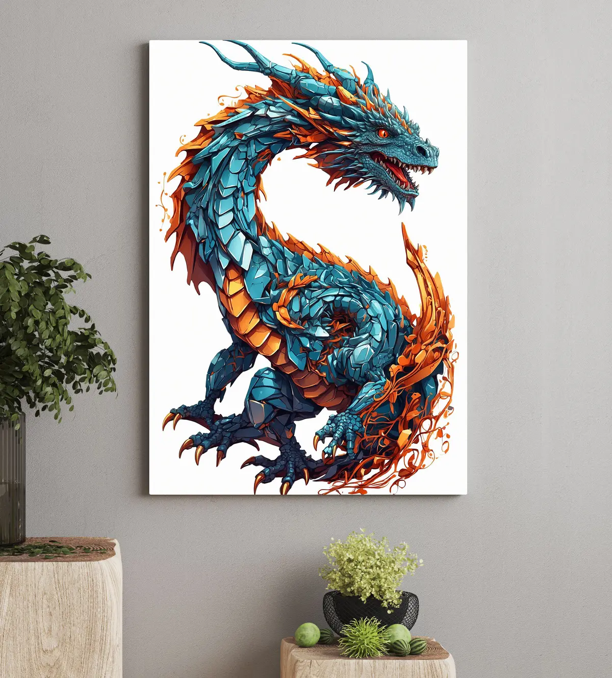 Schilderij Chinese fantasiedraak op witte achtergrond Art. s36432