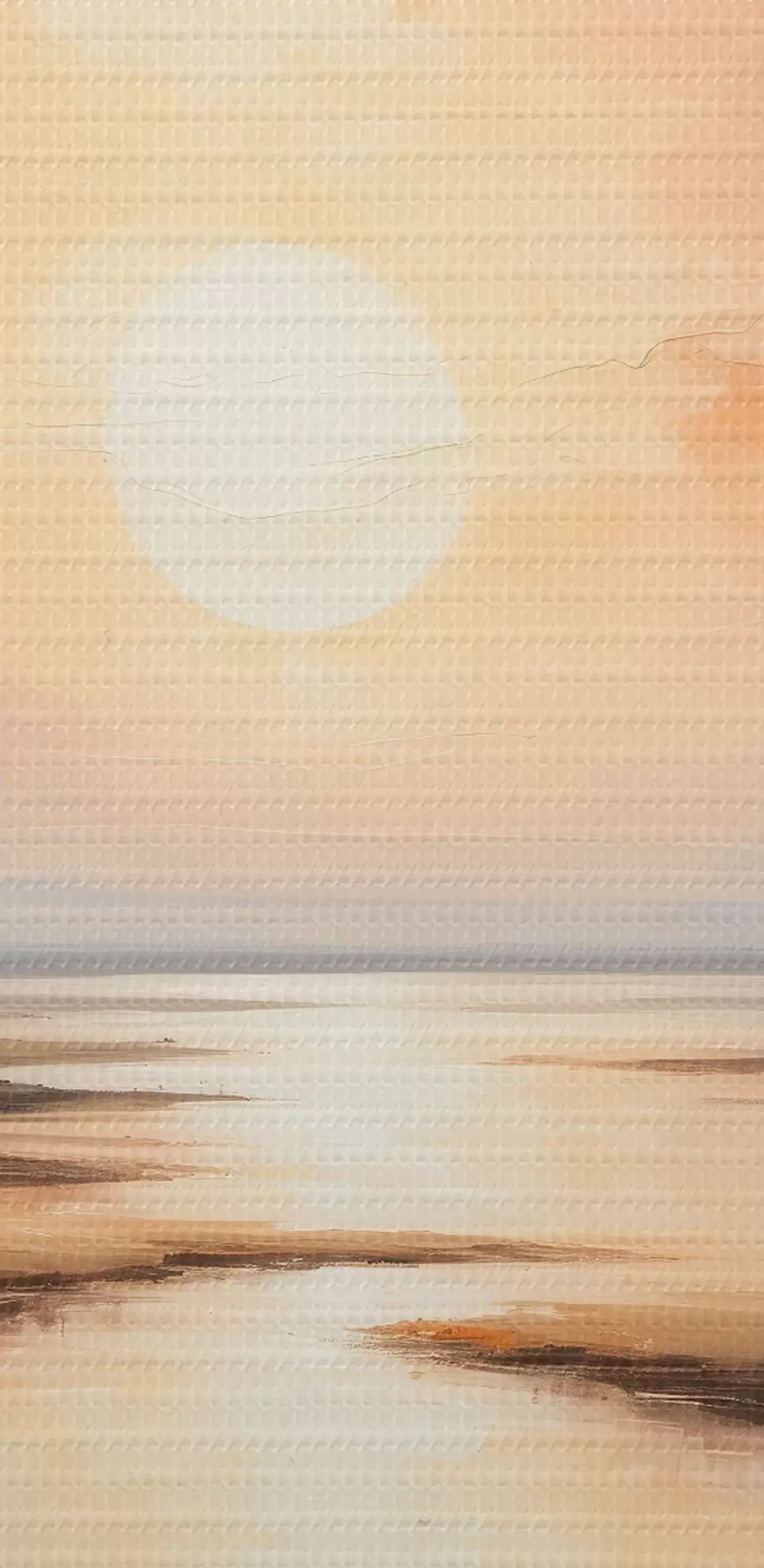 Het schilderij kan direct na ontvangst worden opgehangen. Het schilderij wordt opgespannen op een 2 cm breed houten spieraam.