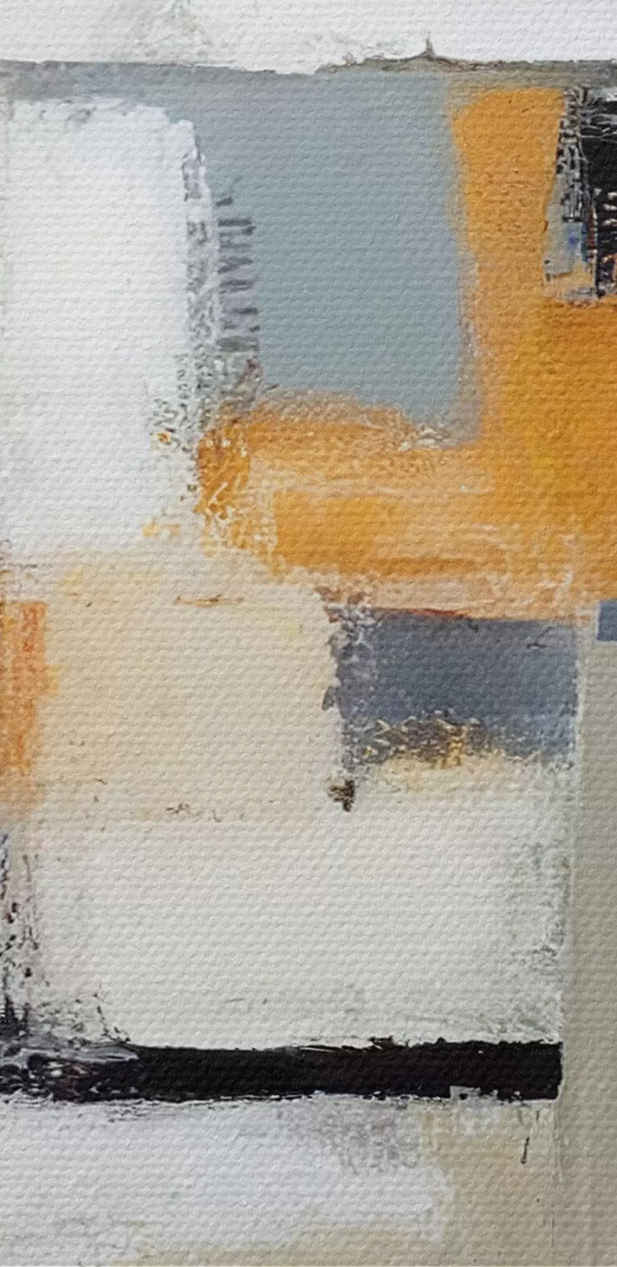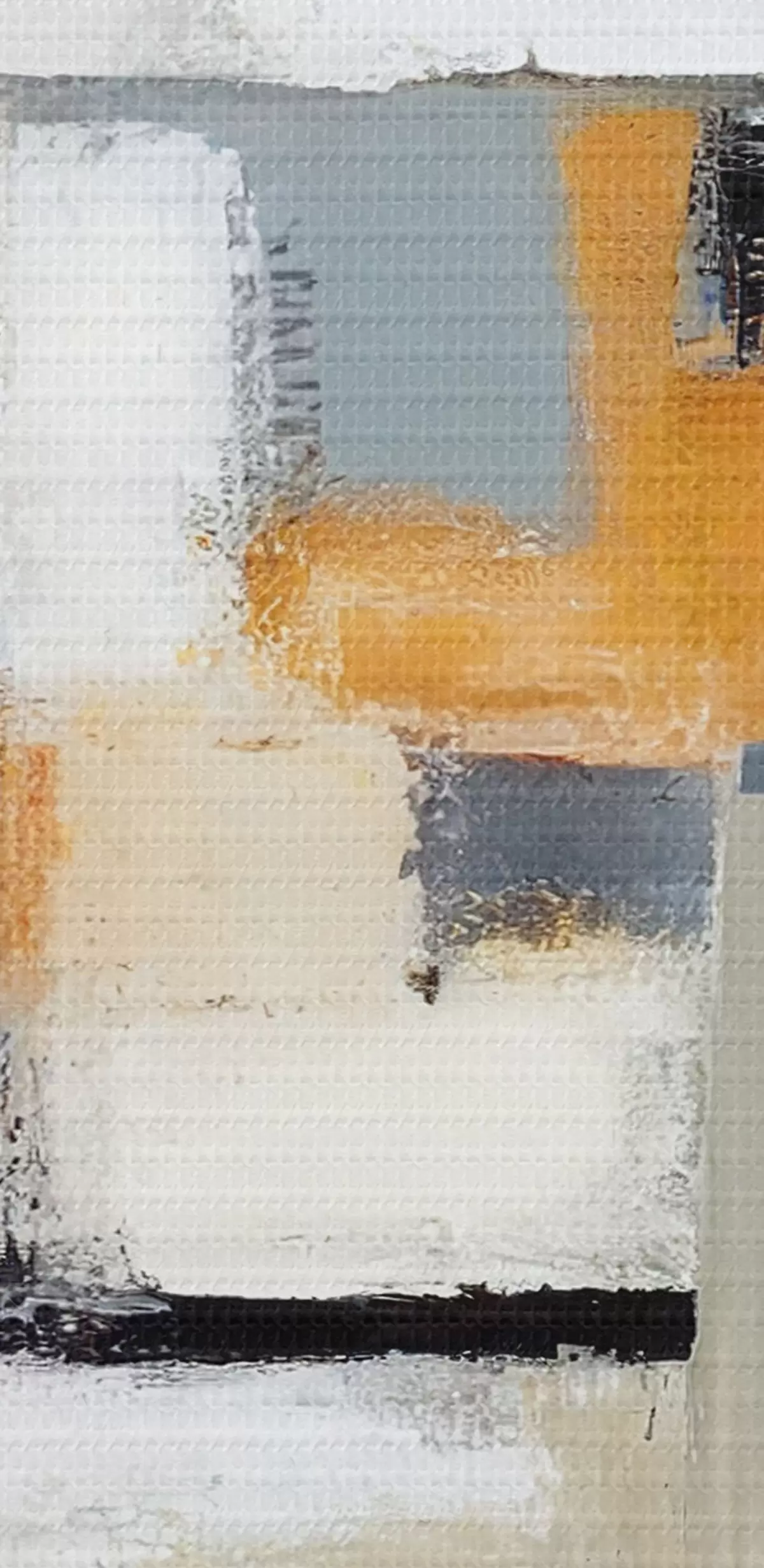 Schilderij Beige en grijze abstractie met oranje en witte weefsels Art. s36624