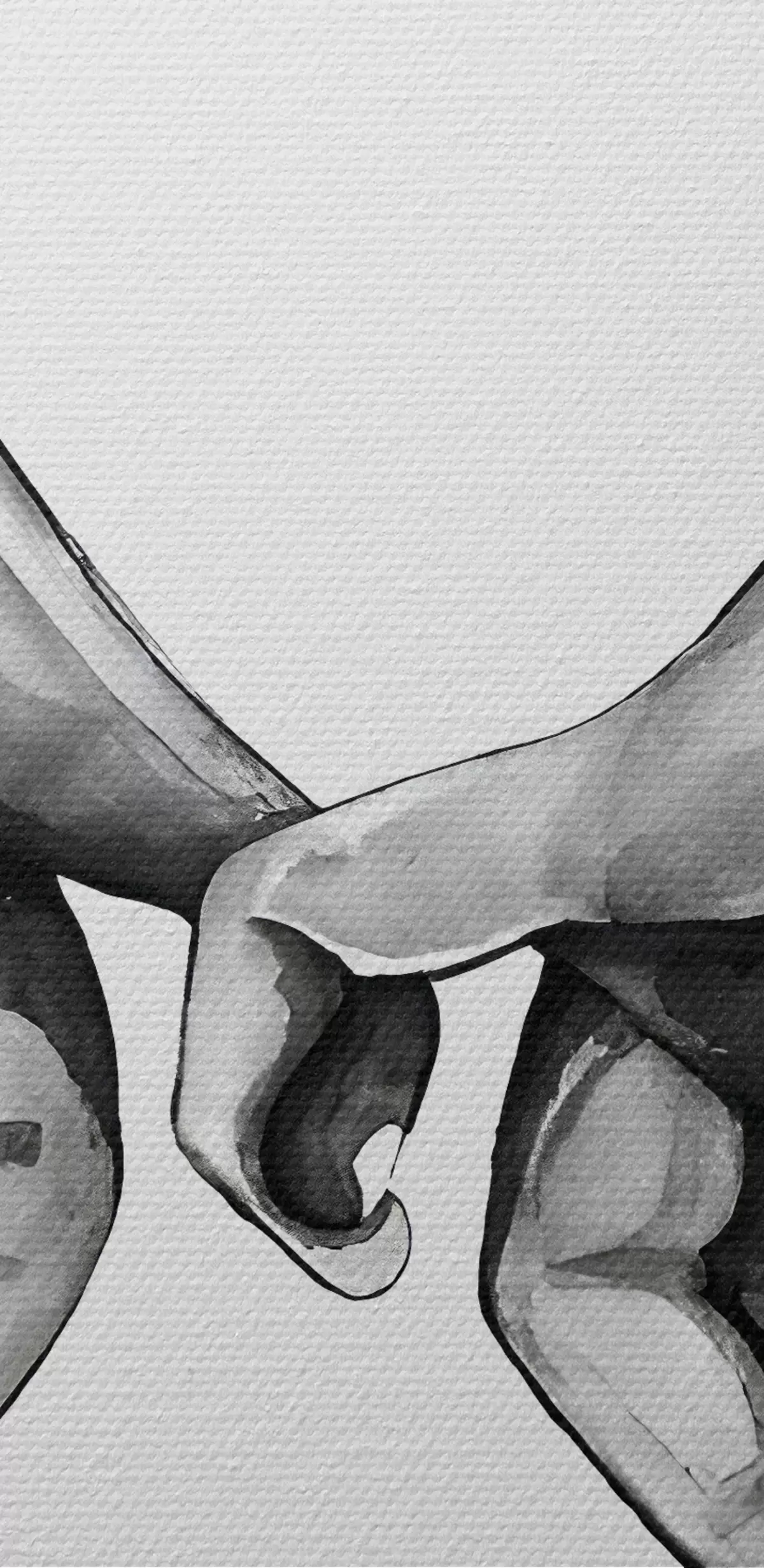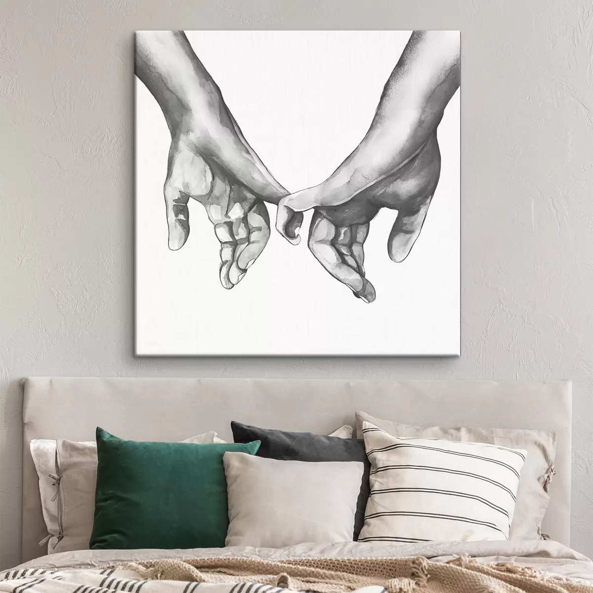 Schilderij Zwart en wit die handen op een witte achtergrond houden Art. s36848