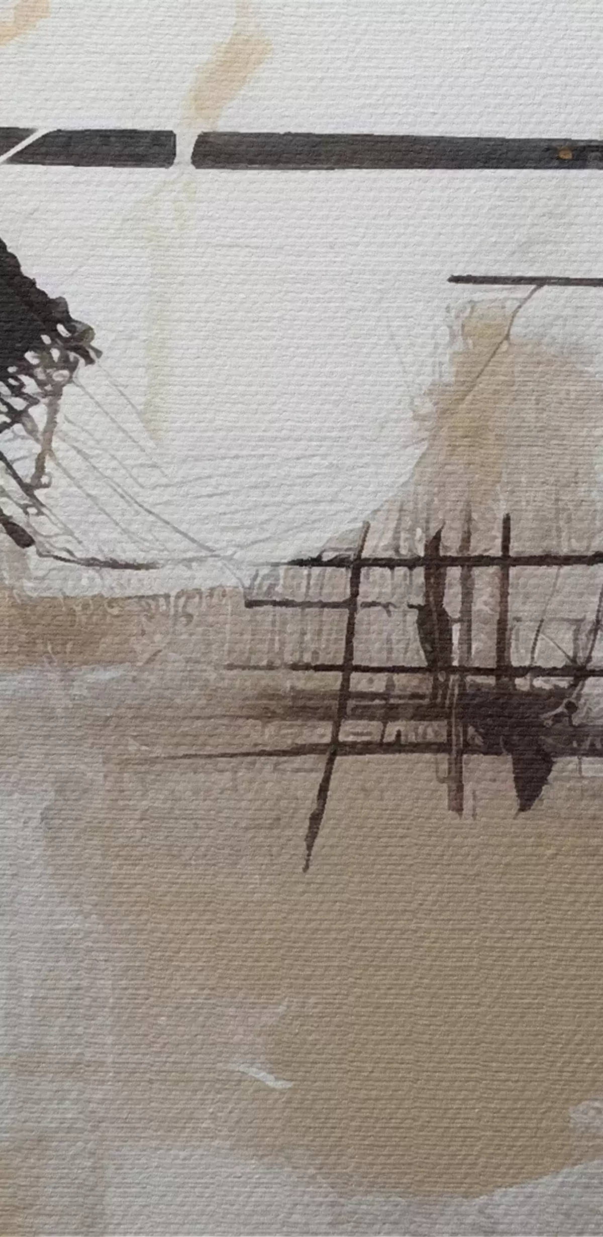 Schilderij Abstract schilderij in zwarte en beige kleuren op witte achtergrond Art. s37067