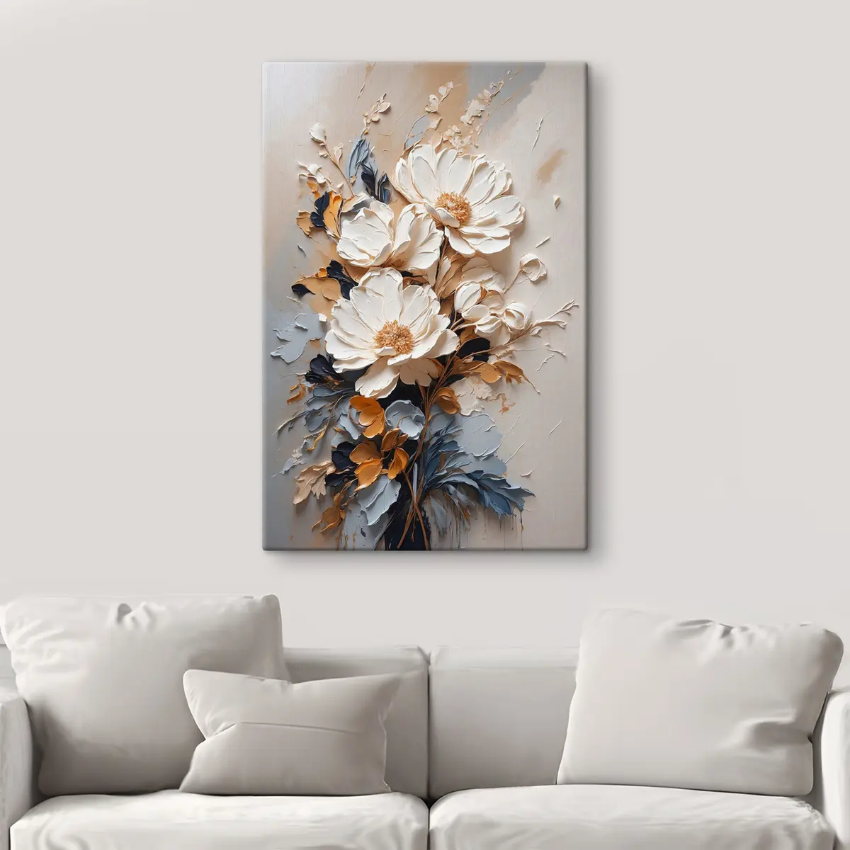 Schilderij Witte bloemen in olie Art. s37327