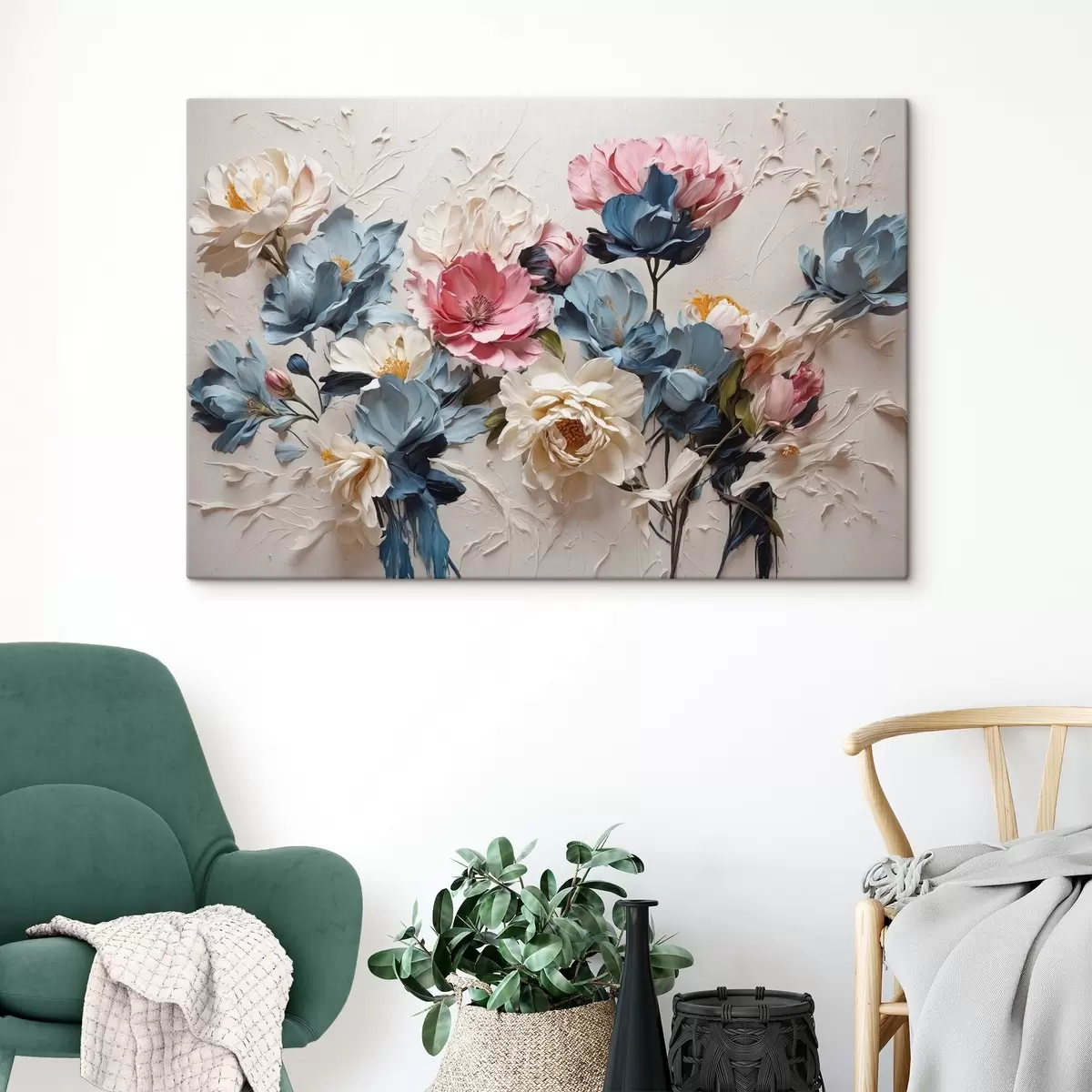 Schilderijen Abstracte veelkleurige bloemen in olieverf s37336